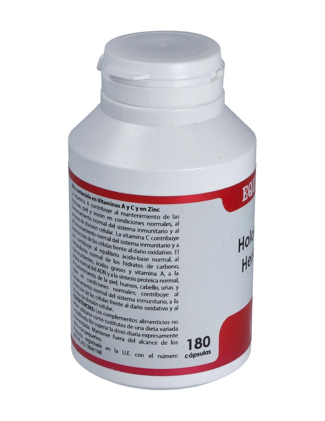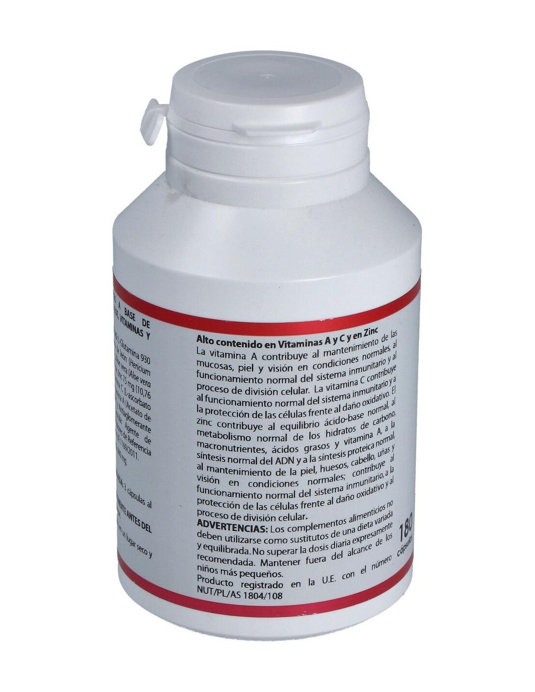 Alto contenido en vitaminas A y C y en zinc: la vitamina A contribuye al mantenimiento de las mucosas, piel y visión en condiciones normales, al funcionamiento normal del sistema inmunitario y al proceso de división celular. La vitamina C contribuye al funcionamiento normal del sistema inmunitario y a la protección de las células frente al daño oxidativo. El zinc contribuye al equilibrio ácido-base normal, al metabolismo normal de los hidratos de carbono, macronutrientes, ácidos grasos y vitamina A, a la síntesis normal del ADN y a la síntesis proteica normal, al mantenimiento de la piel, huesos, cabello, uñas y visión en condiciones normales: contribuye al funcionamiento normal del sistema inmunitario, a la protección de las células frente al daño oxidativo y al proceso de división celular.
