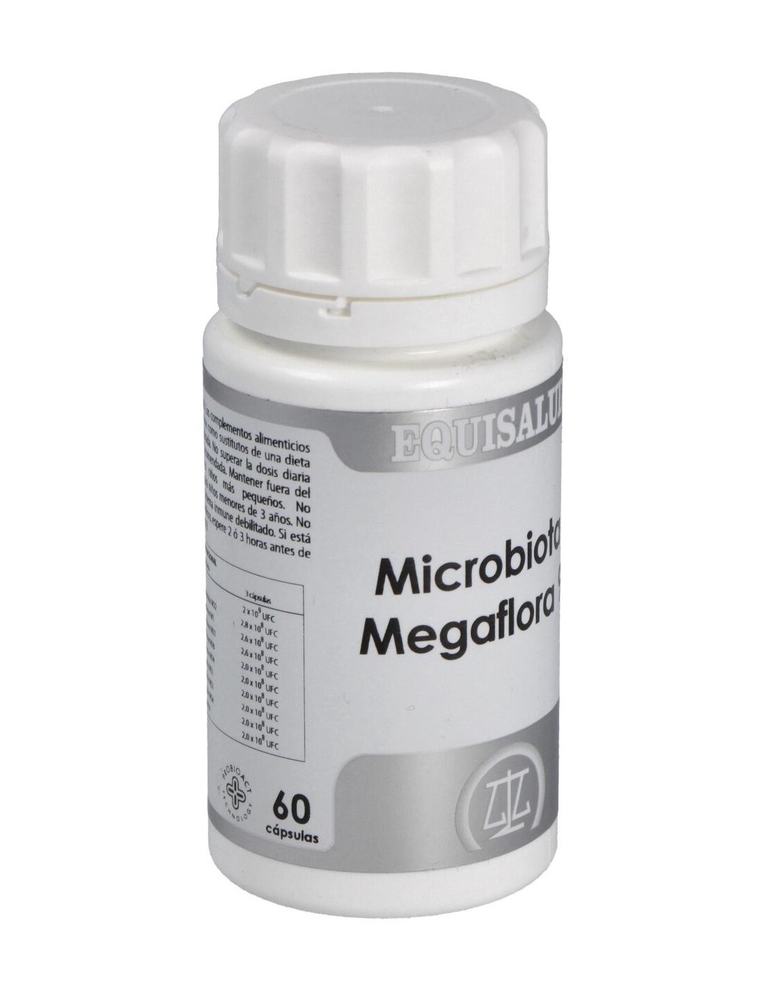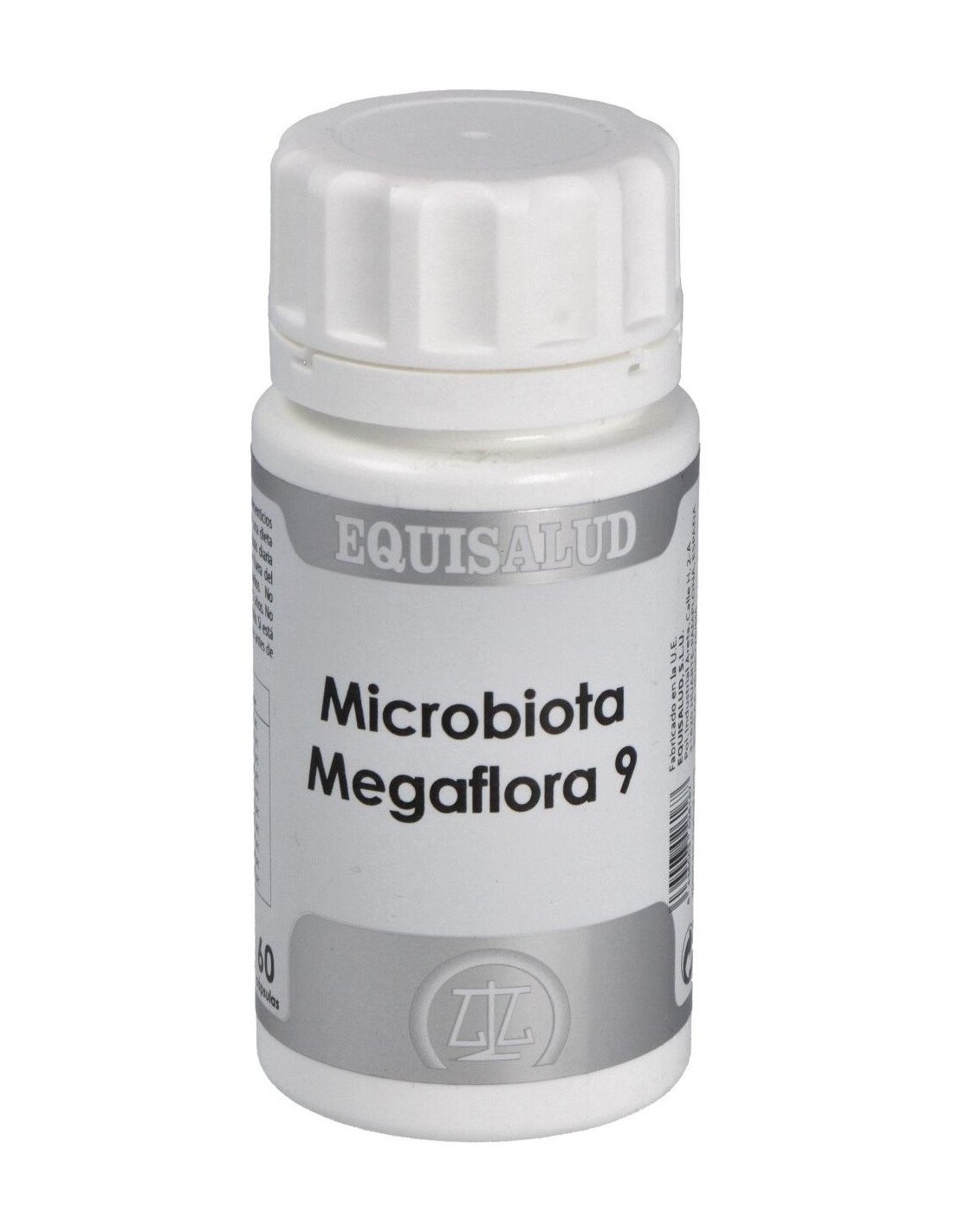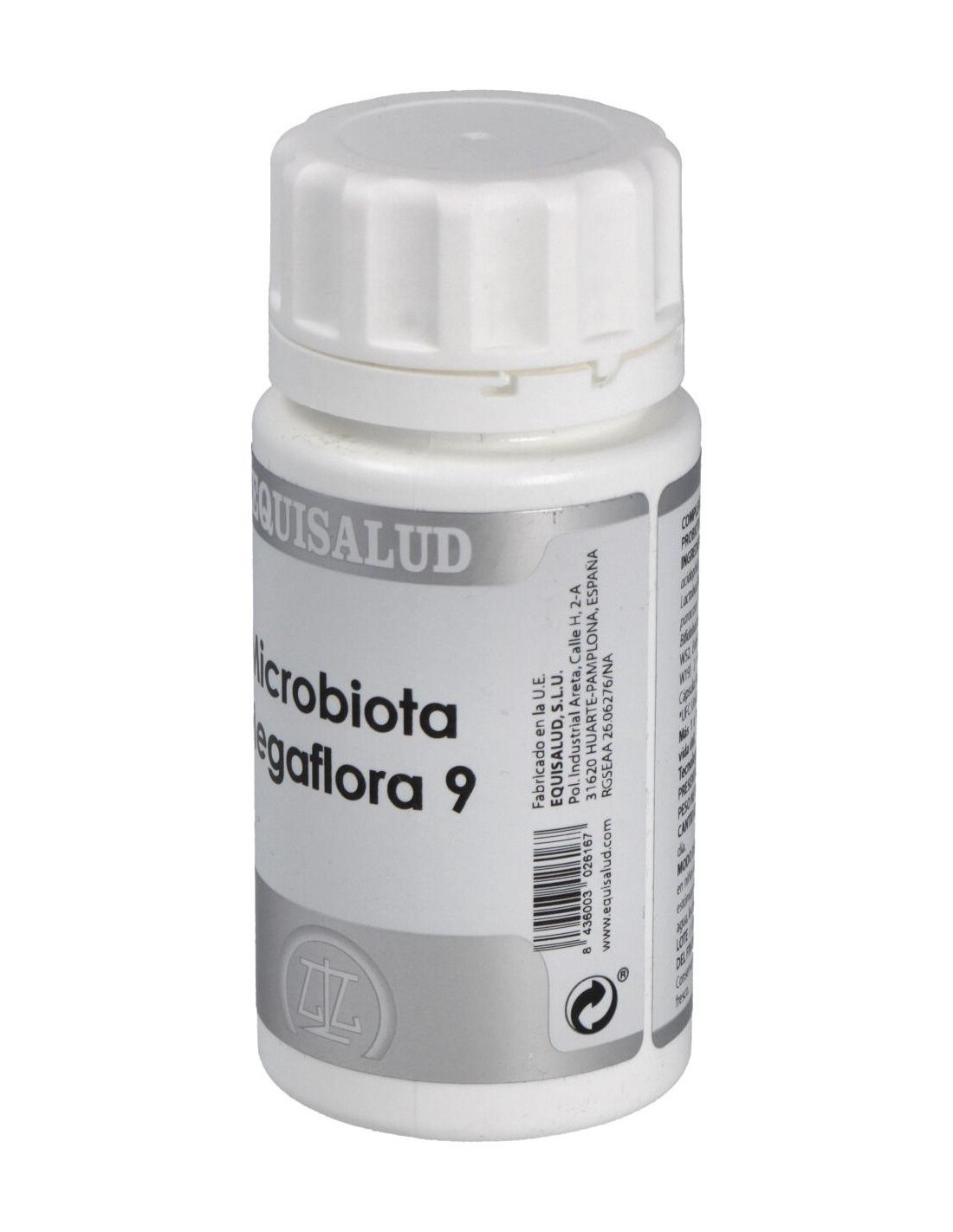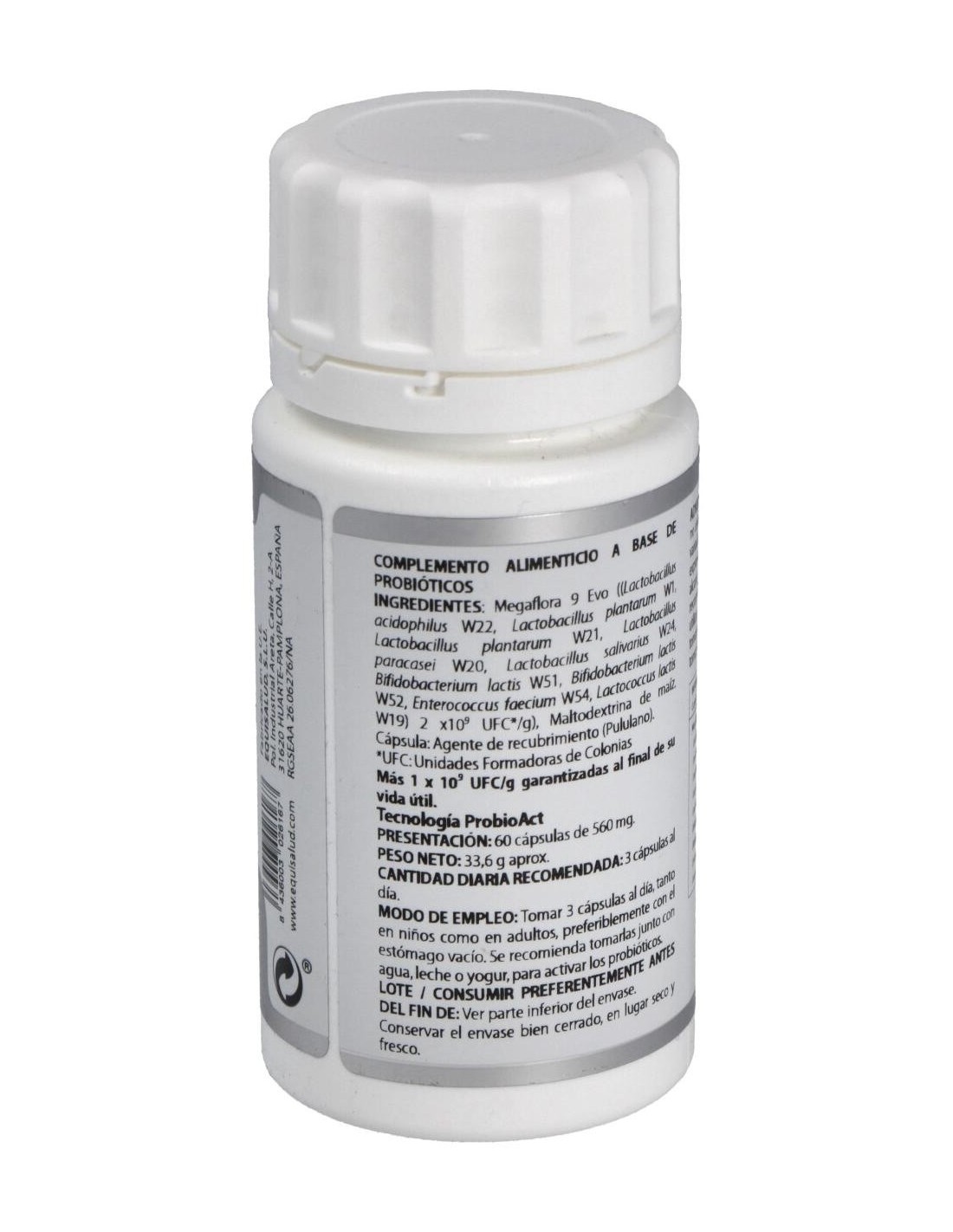 Megaflora 9® ((Bifidobacterium lactis W51, Bifidobacterium lactis W52, Enterococcus faecium W54, Lactobacillus acidophilus W22, Lactobacillus paracasei W20, Lactobacillus plantarum W21, Lactobacillus salivarius W24, Lactococcus lactis W19) 1x109 UFC/g), 990 mg. Excipiente tecnológico: maltodextrina de maíz (agente de carga). Envoltura: agente de recubrimiento (hidroxipropilmetilcelulosa) y gelificante (goma gellan).