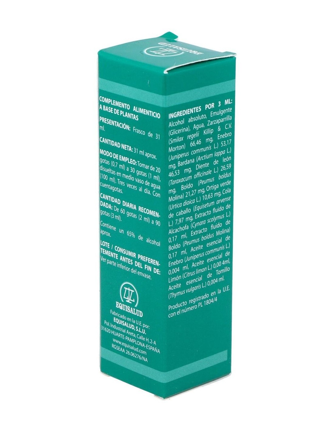 Bardana, Boldo, Cola de Caballo, Diente de León, Enebro, Ortiga Verde, Zarzaparrilla, Alcachofa, Límón, Tomillo.