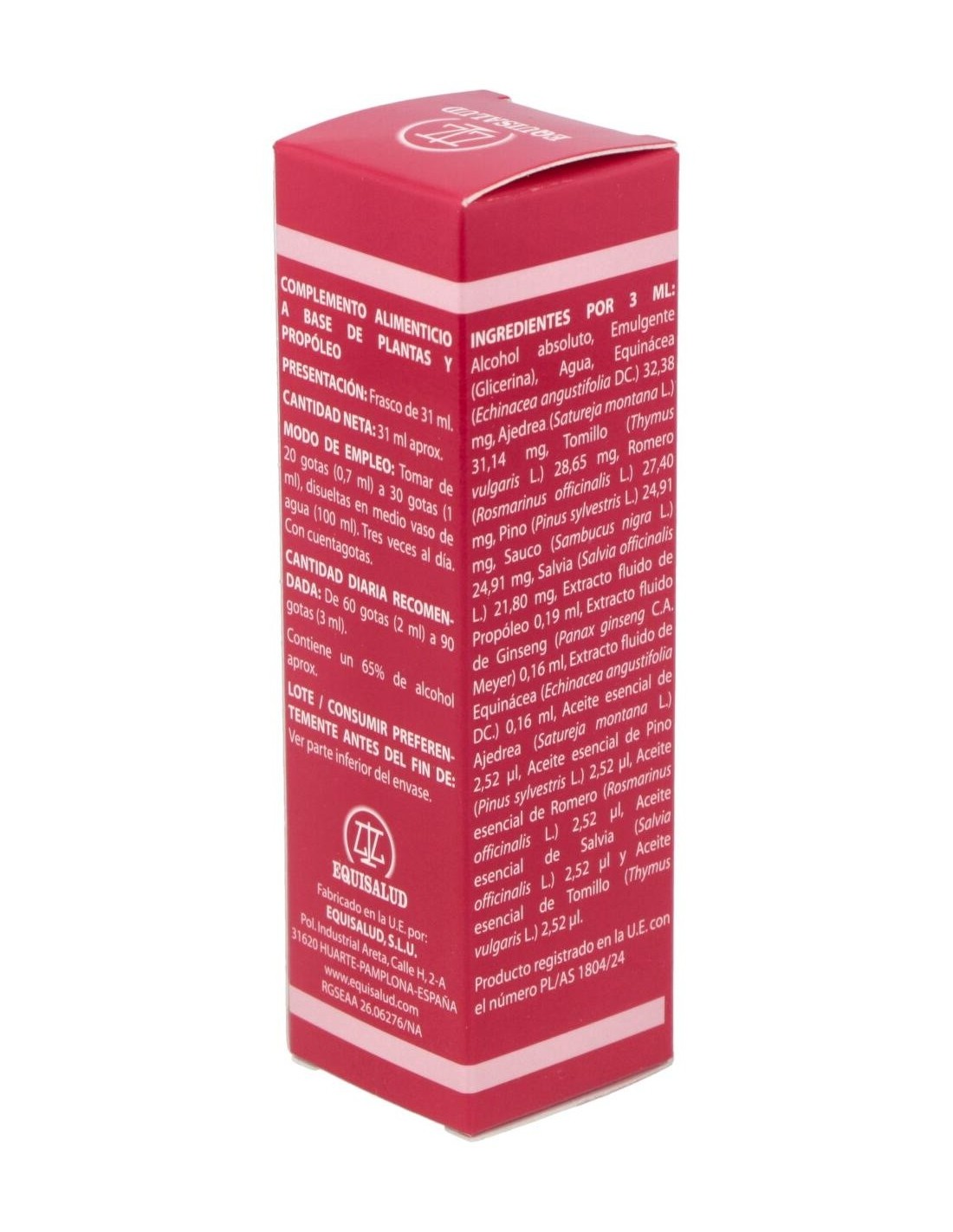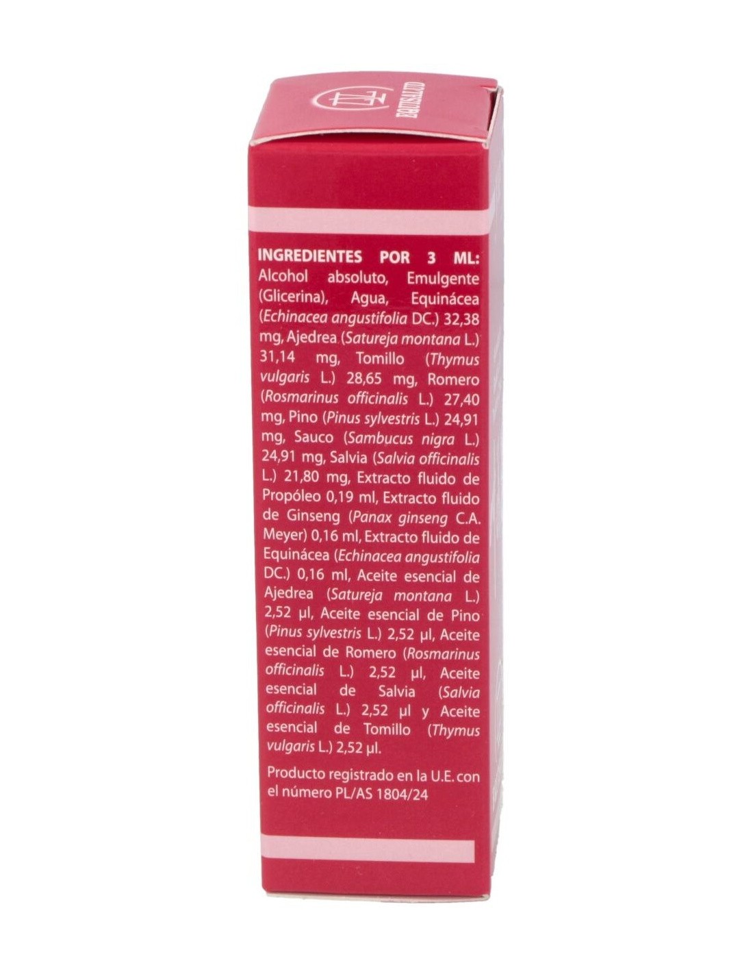 EQUINÁCEA, AJEDREA, TOMILLO, ROMERO, PINO, SAUCO, SALVIA, PROPÓLEO, GINSENG, EXTRACTO FLUIDO DE EQUINACEA, ACEITE ESENCIAL DE AJEDREA, ACEITE ESENCIAL DE PINO, ACEITE ESENCIAL DE SALVIA, ACEITE ESENCIAL DE ROMERO, ACEITE ESENCIAL DE TOMILLO.