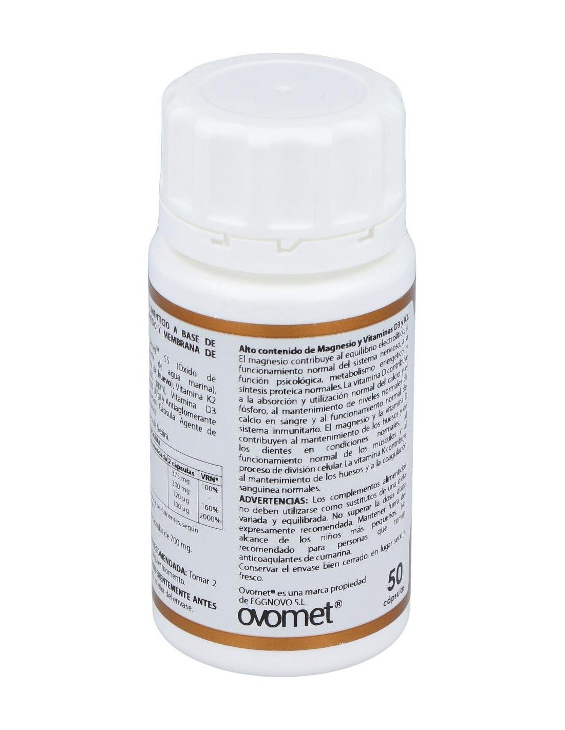 SIMAG 55 (óxido de magnesio procedente de agua marina), 187,5 mg; OVOMET® (membrana interna de huevo, polvo), 150 mg; vitamina K2 (menaquinona), 60 µg; vitamina D3 (colecalciferol), 50 µg. Envoltura: polisacárido de origen vegetal (pululano).