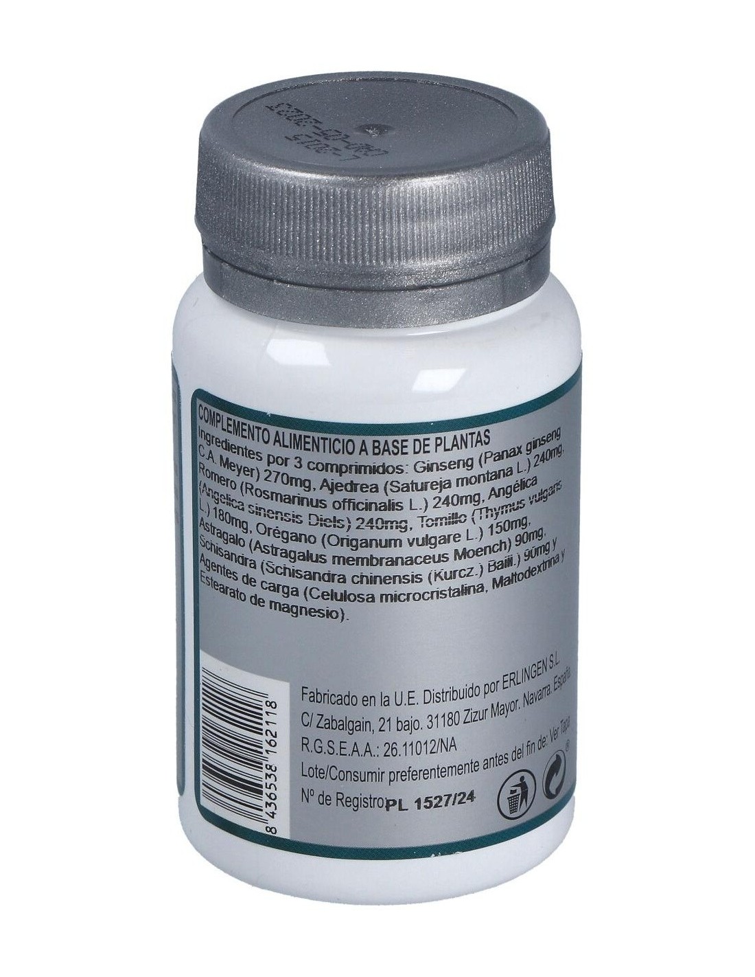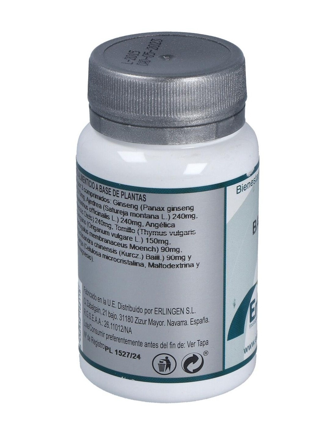 Erlingen Base 07 60comp es un complemento alimenticio a base de extractos de plantas con propiedades adaptógenas (Ginseng y Schisandra) y antisépticas de las vías respiratorias (romero, tomillo, orégano...) de soporte en caso de estados de baja energía o convalecencia.
