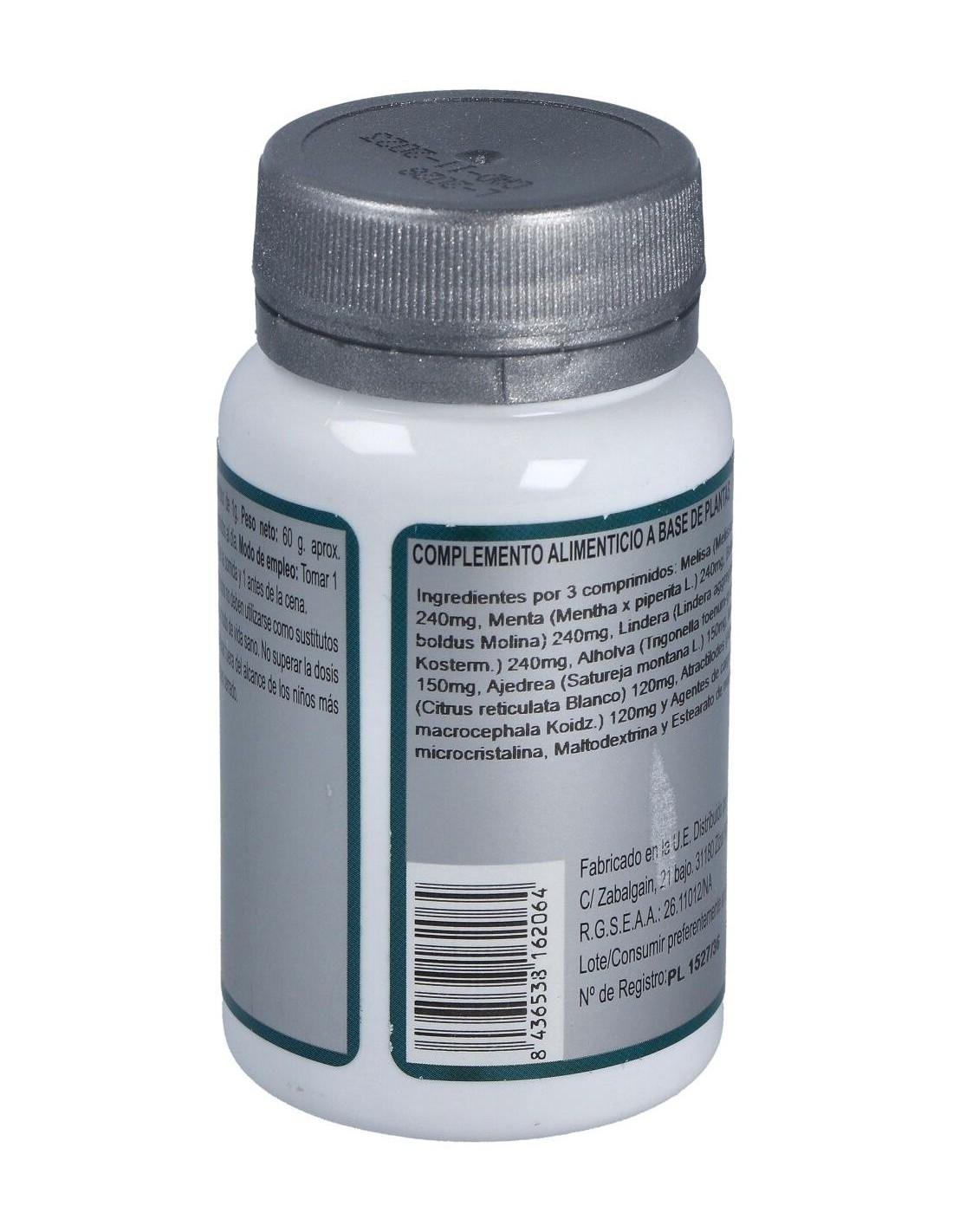 MELISA (MELISSA OFFICINALIS L.), MENTA (MENTHA X PIPERITA L.), BOLDO (PEUMUS BOLDUS MOLINA), LINDERA (LINDERA AGGREGATA (SIMS) KOSTERM.), ALHOLVA (TRIGONELLA FOENUM-GRAECUM L.), AJEDREA (SATUREJA MONTANA L.), MANDARINA (CITRUS RETICULATA BLANCO), ATRACTILODES (ATRACTYLODES MACROCEPHALA KOIDZ.).