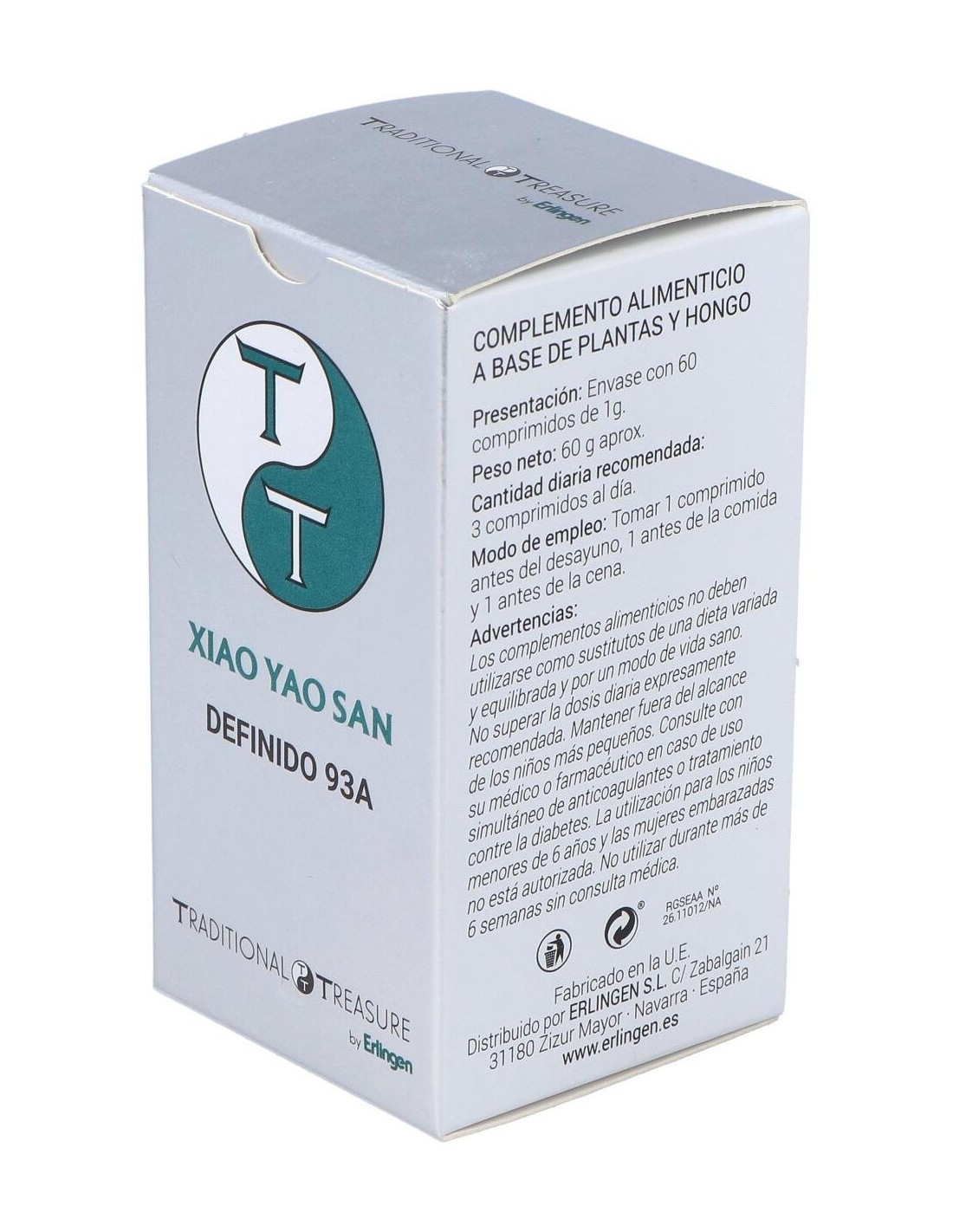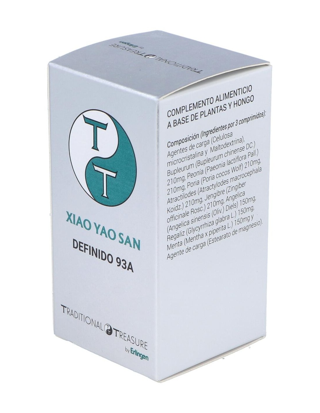 Agentes de carga (Celulosa microcristalina y Maltodextrina), Bupleurum (Bupleurum chinense DC.) 210 mg, Peonía (Paeonia lactiflora Pall.) 210 mg, Poria (Poria cocos Wolf) 210 mg, Atractilodes (Atractylodes macrocephala Koidz.) 210 mg, Jengibre (Zingiber officinale Rosc.) 210 mg, Angélica (Angelica sinensis (Oliv.) Diels) 150 mg, Regaliz (Glycyrrhiza glabra L.) 150 mg, Menta (Mentha x piperita L.) 150 mg y Agente de carga (Estearato de magnesio).