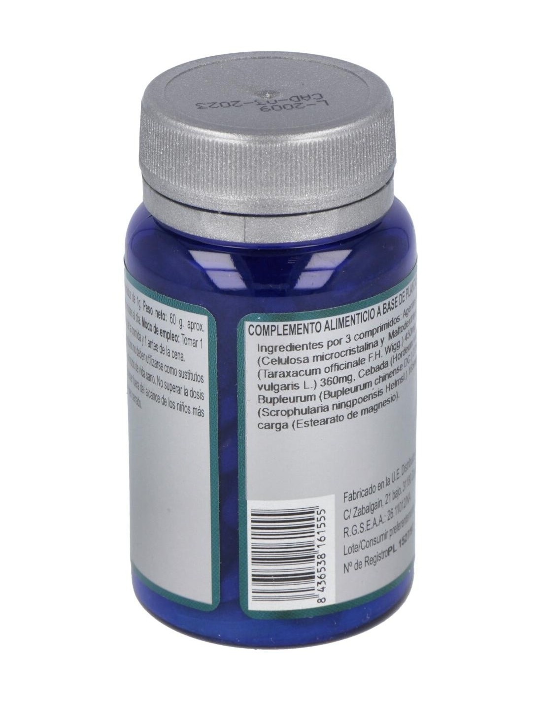 Agentes de carga (Celulosa microcristalina y Maltodextrina), Diente de león (Taraxacum officinale F.H. Wigg.) 450 mg, Prunella (Prunella vulgaris L.) 360 mg, Cebada (Hordeum vulgare L.) 300 mg, Bupleurum (Bupleurum chinense DC.) 225 mg, Escrofularia (Scrophularia ningpoensis Helmsl.) 165 mg y Agente de carga (Estearato de magnesio).
