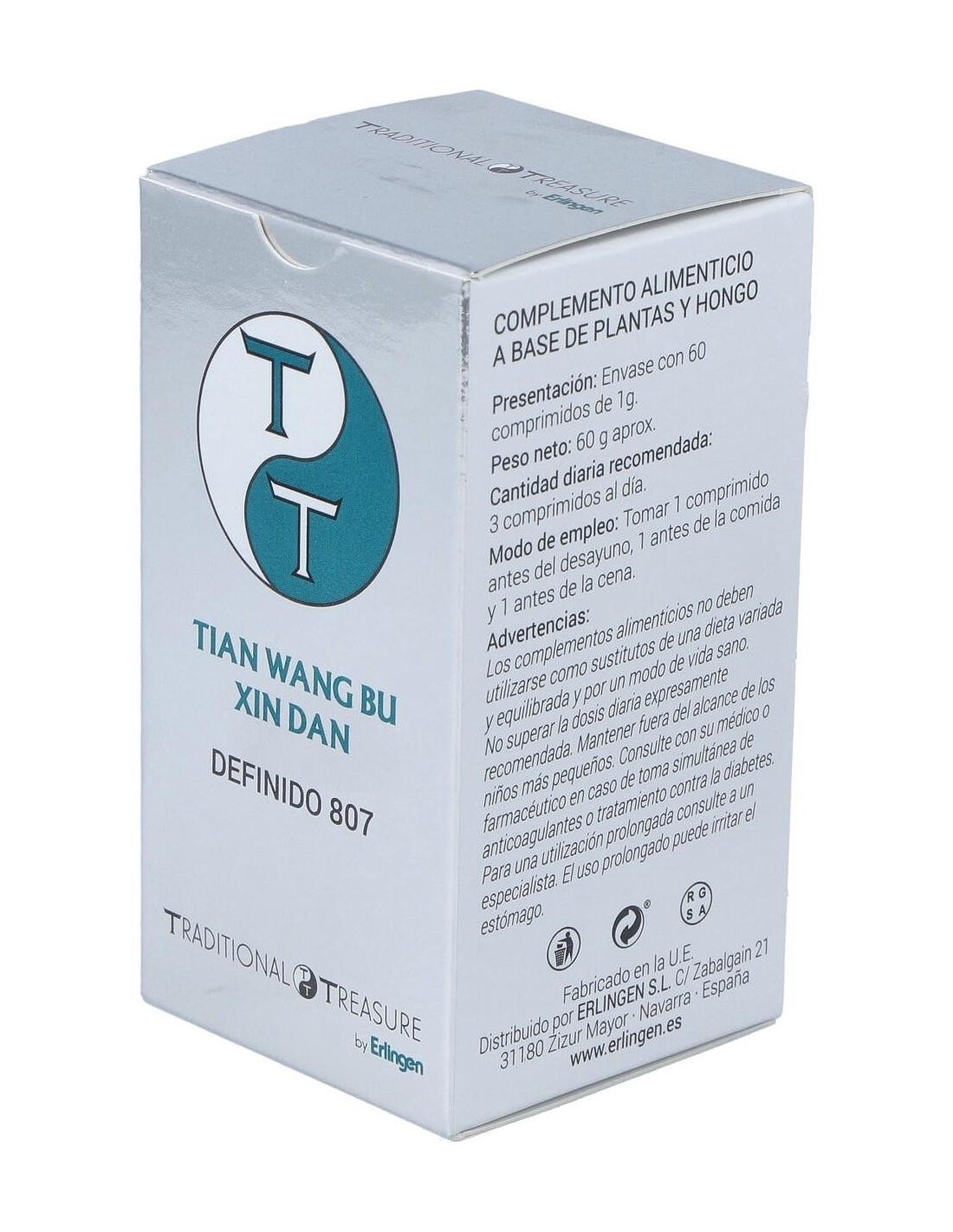 Erlingen Definido 807 Tian Wang Bu Xin Dan 60comp son unos comprimidos que contribuyen al buen funcionamiento cognitivo. Además, se recomienda en casos de insomnio, ya que favorece el correcto rendimiento físico y mental en épocas de estrés.