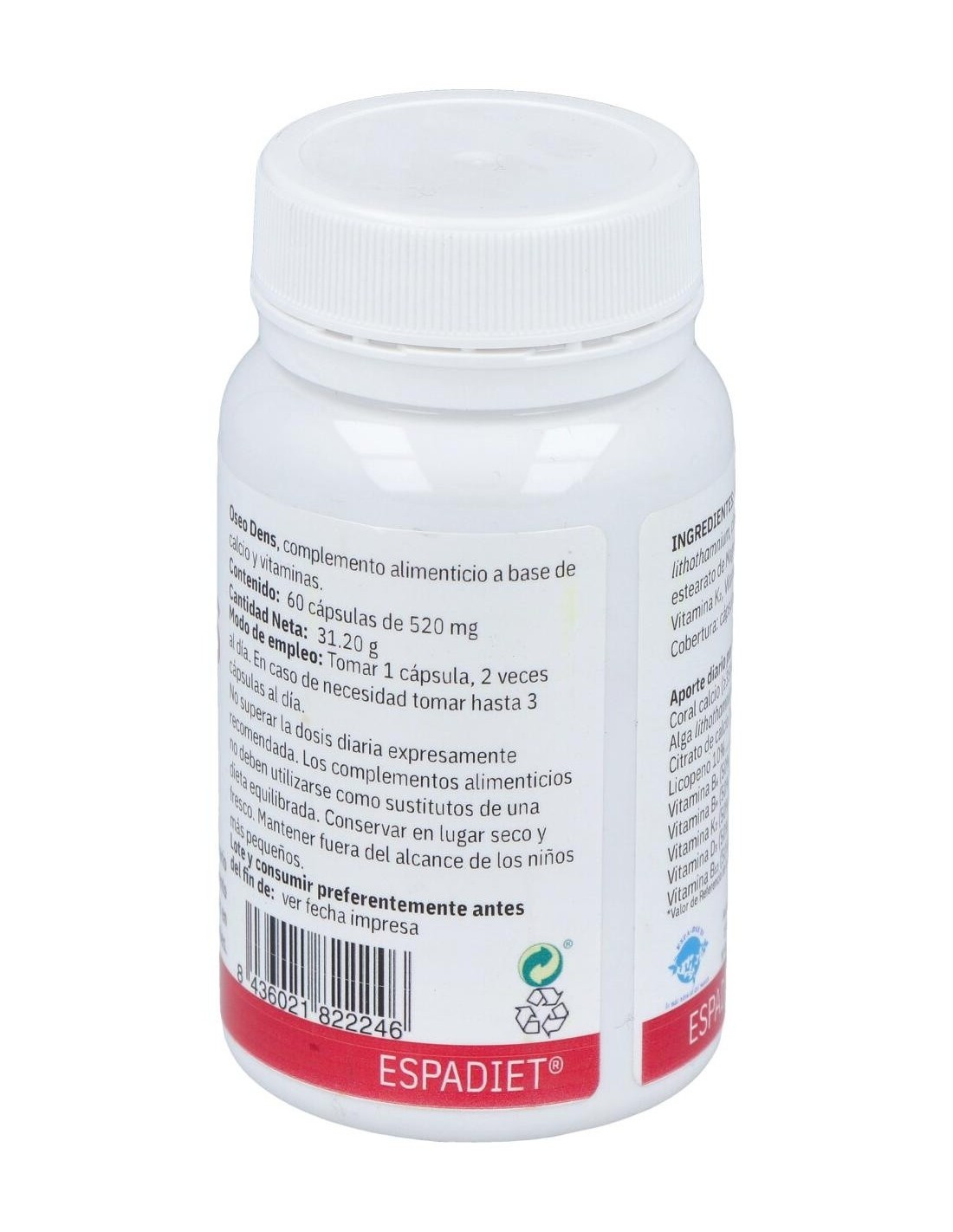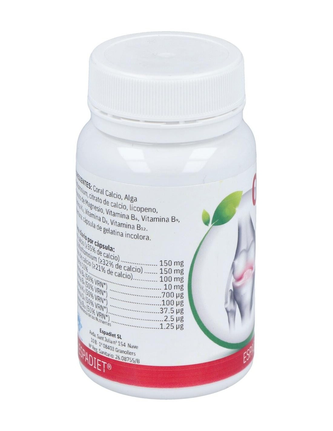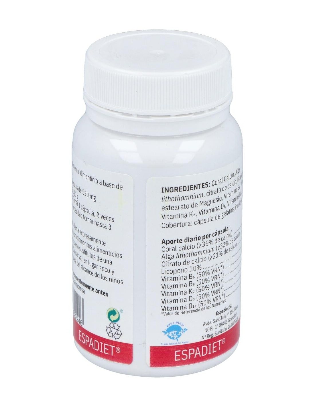 Coral calcio, alga lithothamnium, citrato de calcio, licopeno, vitamina B6, vitamina B9, vitamina K2, vitamina D3, vitamina B12.