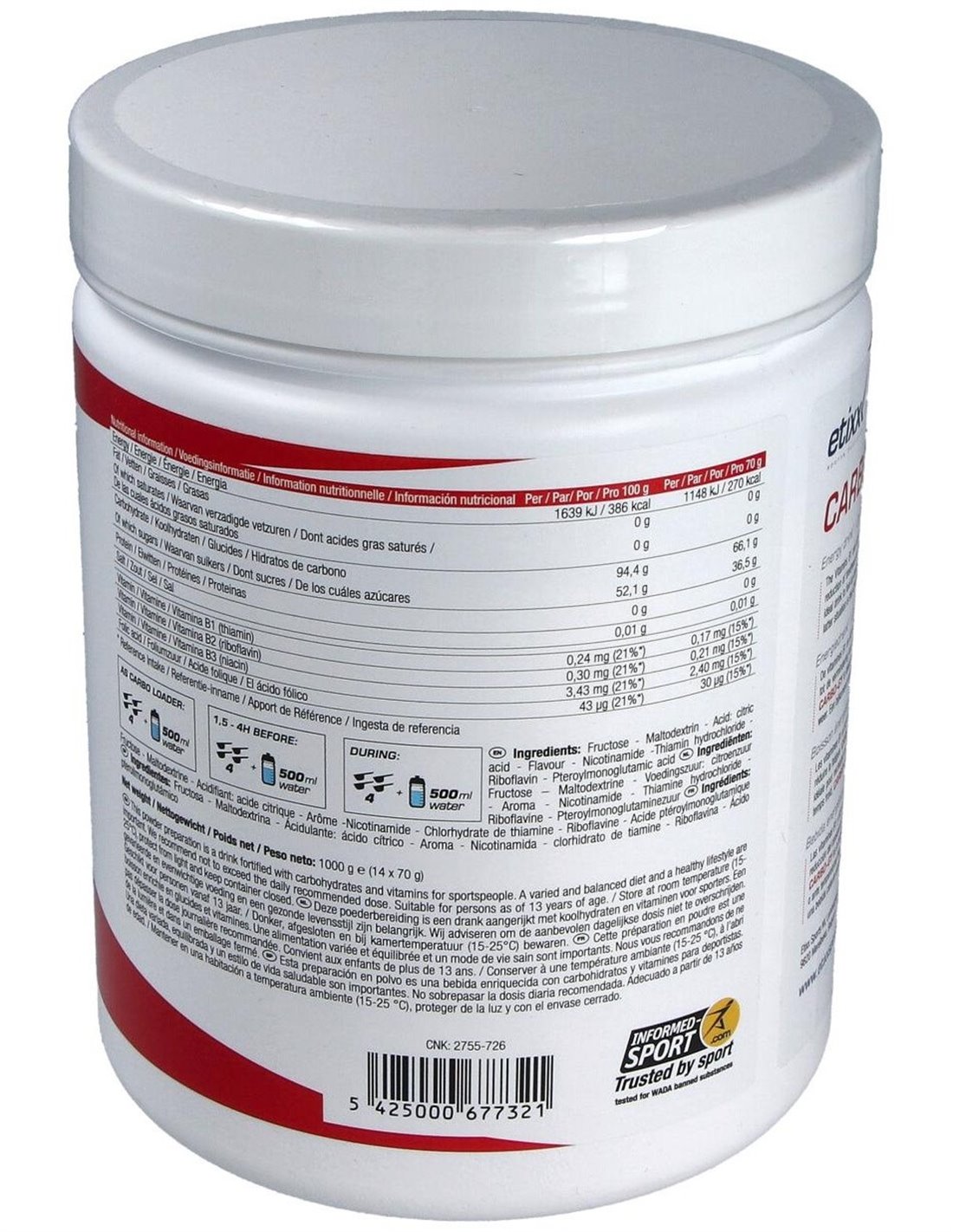 Con azúcares rápidos (maltodextrina) y lentos (fructosa) para el suministro de energía a largo plazo. Bebida energética que se puede beber fría o caliente. Se puede utilizar como carga de carbohidratos, en combinación con una dieta rica en carbohidratos.