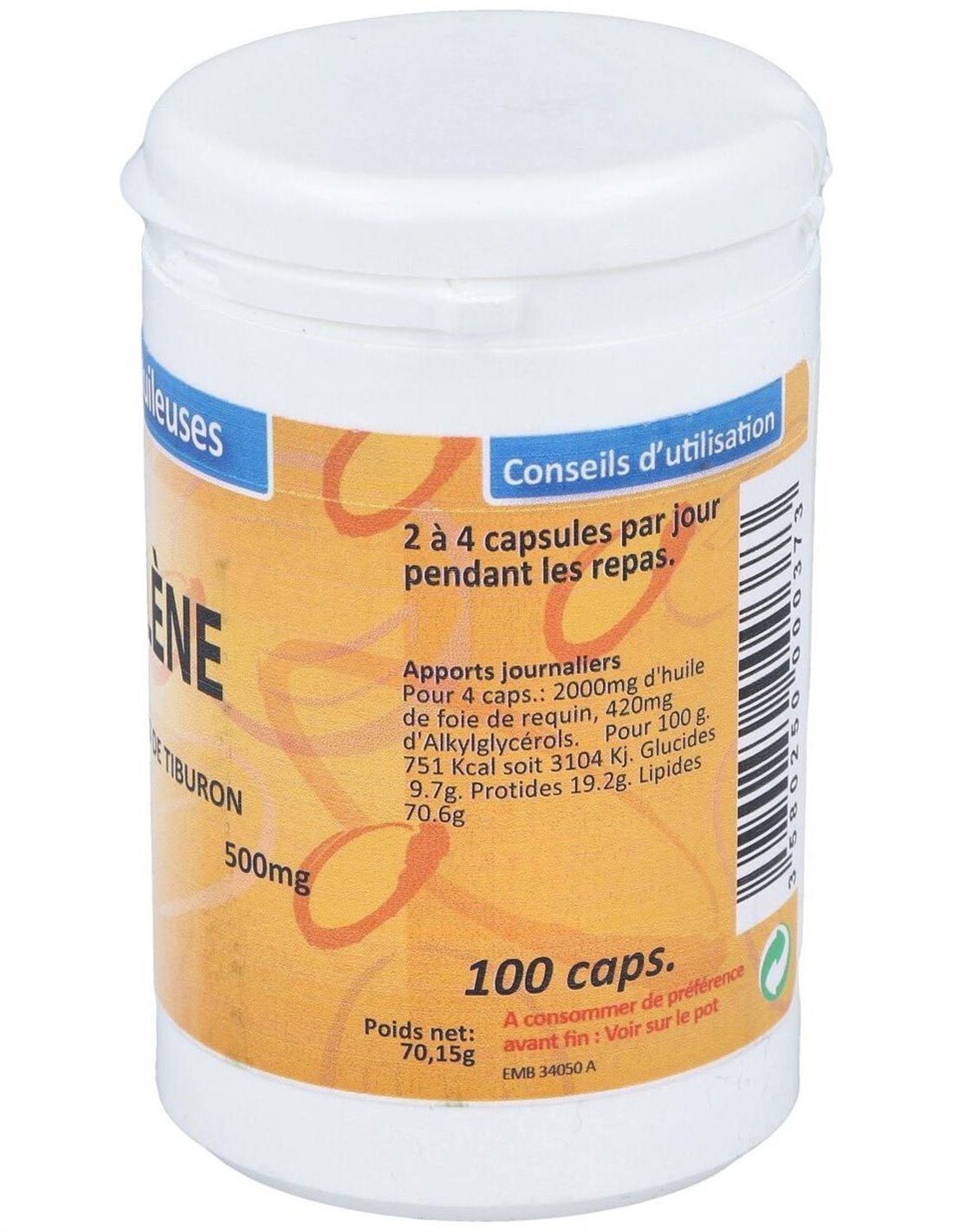 Aceite de Hígado de tiburón ......500 mg (Alquilglicerol 20,5%)