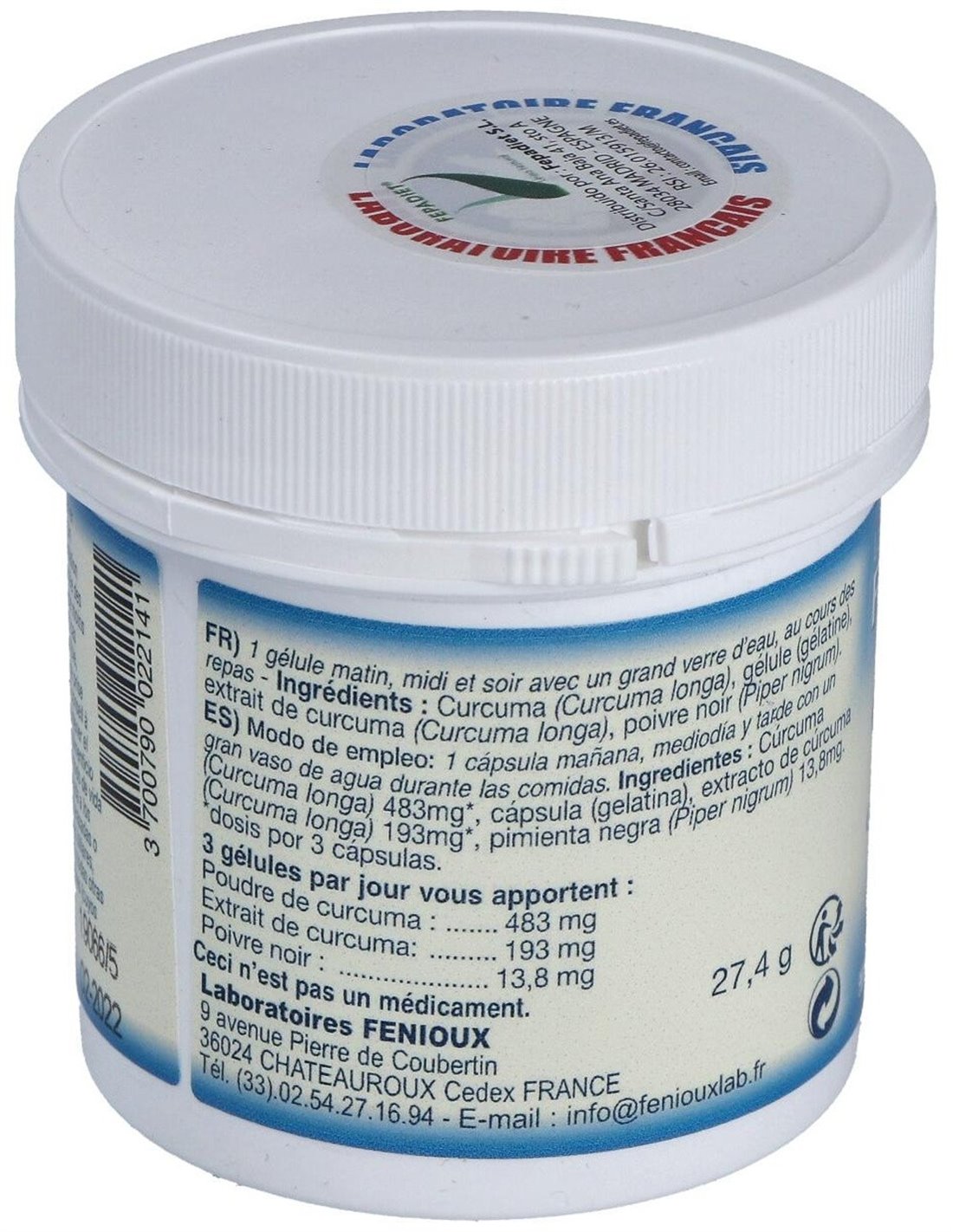 Complemento alimenticio a base de Cúrcuma y Pimienta Negra que gracias a su acción antiinflamatoria contribuye a mejorar las molestias articulares habituales como la rigidez y a tener un buen funcionamiento del tracto intestinal haciendo que las evacuaciones sean más consistentes. No apto para menores de 18 años o mujeres lactantes o embarazadas. Consultar con un especialista en caso de tomar otros medicamentos, incluidos los anticoagulantes.