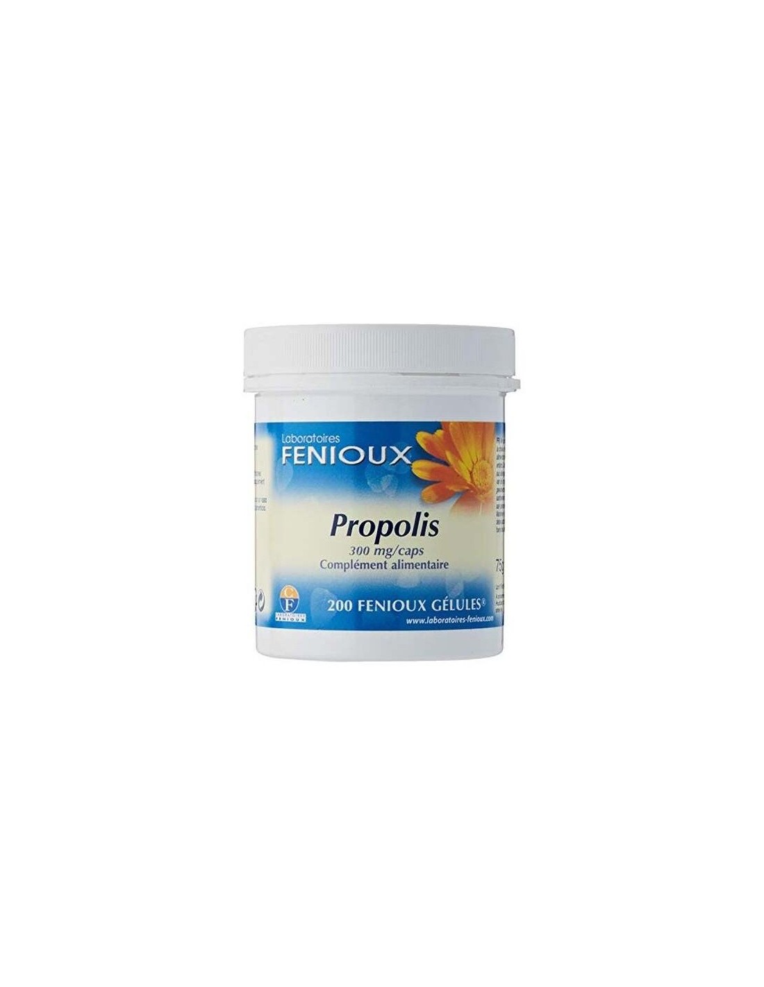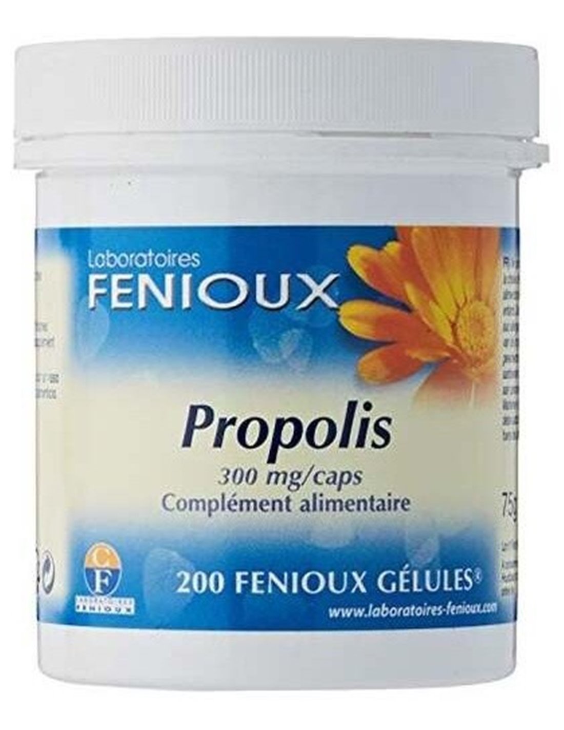 Propóleo de Fenioux es un material producido por las abejas a partir de determinadas sustancias recogidas en la planta y mezcladas por su propia secreción. El propóleo sirve de protección para reducir las entradas a la colmena. Este escudo natural permite sellar grietas, reparar los alvéolos, ayudar a sellar y en particular limpiar las células donde la reina pondrá huevos. Por tanto, este complejo contiene resinas, ceras, aceites esenciales, polen, flavonoides, oligoelementos y vitaminas. El propóleo, según han demostrado varios estudios científicos, posee muchas otras propiedades medicinales, entre las que se le reconocen: antibióticas (fungicida y bacteriana), cicatrizantes, antiinflamatorias, analgésicas, antialérgicas, epitelizantes y anestésicas, entre otras. No exceda la dosis indicada. Un complemento alimenticio no debe sustituir una dieta variada y equilibrada y un estilo de vida saludable. Manténgase fuera del alcance de los niños pequeños. No recomendado para personas alérgicas al polen y personas predispuestas a sufrir alergias o asma Almacene el producto lejos de la luz, el calor y la humedad.