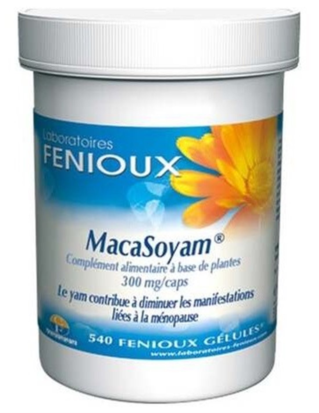 10% de extracto de soja de isoflavona (Glycine max), extracto de Maca (Lepidium meyenii), gelatina, extracto de Yam (Dioscorea villosa) con 16% de diosgenina.