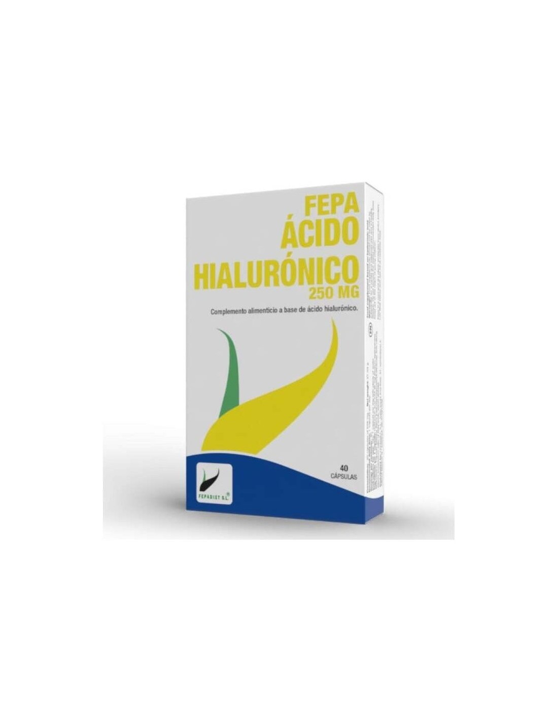 FEPADIETComplemento alimenticio a base de ácido hialurónico. El ácido hialurónico es un componente presente de forma natural en nuestras articulaciones, cartílagos y piel, por lo que es necesario para el normal mantenimiento de estos tejidos.