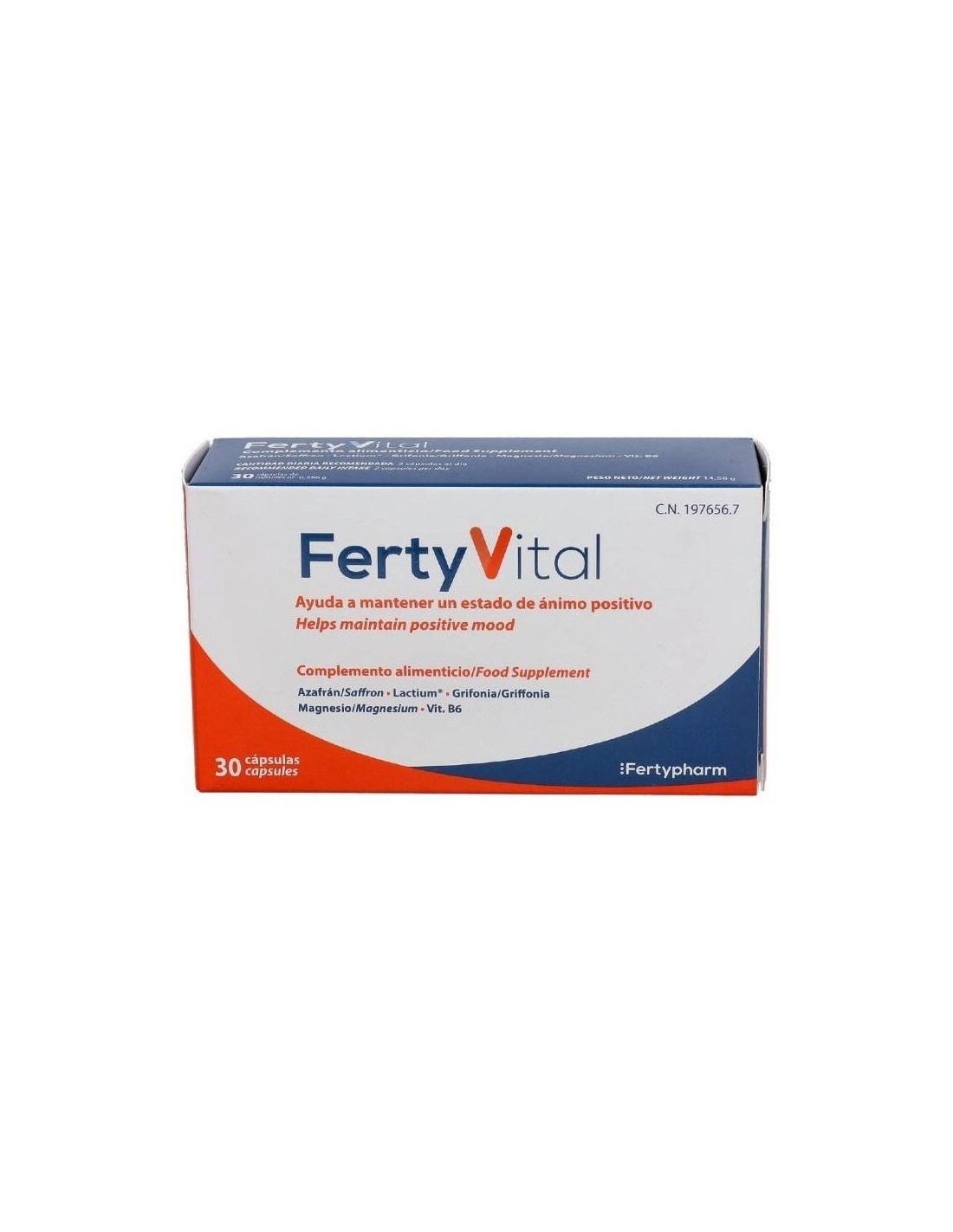 FERTYVITALNutracéutico en fertilidad con ingredientes naturales que apoyan el tono vital. Lactium® es un péptido bioactivo (casozepina) proveniente de la hidrólisis de la caseína, una proteína natural de la leche. Tiene propiedades relajantes. La Grifonia es una planta cuyas semillas son ricas en 5-HTP (5-hidroxitriptófano), un intermediario metabólico en la conversión de triptófano a serotonina, la hormona del bienestar. El magnesio contribuye a las funciones psicológicas normales y a reducir el cansancio y fatiga, por lo que ayuda al tono vital de las pacientes. La vitamina B6 ayuda a las funciones psicológicas normales y a reducir el cansancio y la fatiga. Por estos motivos, se considera un complemento ideal para acompañar FIV y la fertilidad.