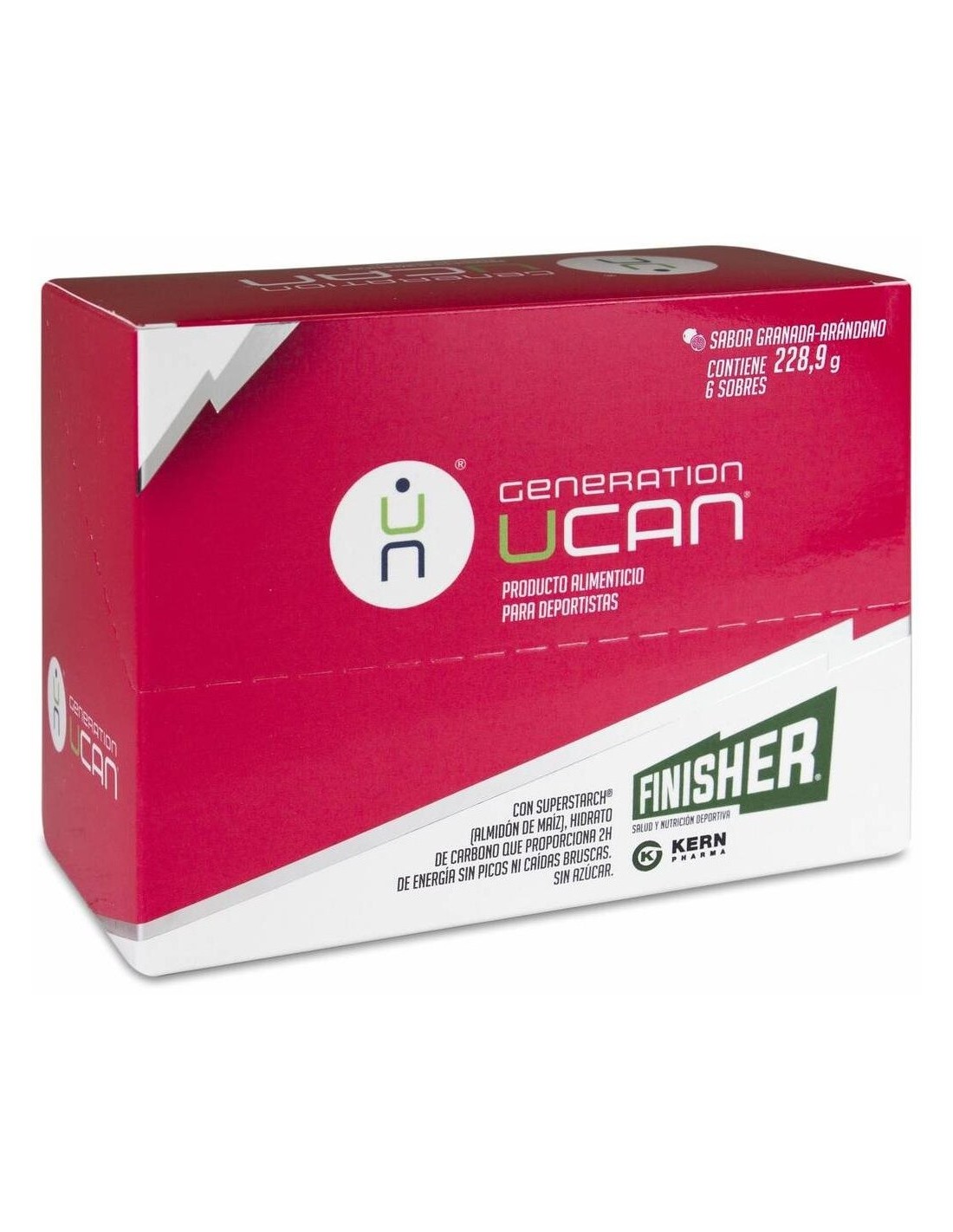 Finisher Generation Ucan Granada y Arándano 6 Sobres es un complemento alimenticio en sobres con hidratos de carbono que ayudan a proporcionar 2 horas de energía. También contiene proteínas por este motivo, colabora a aumentar y conservar la masa muscular. Con sabor a granada y arándanos.
