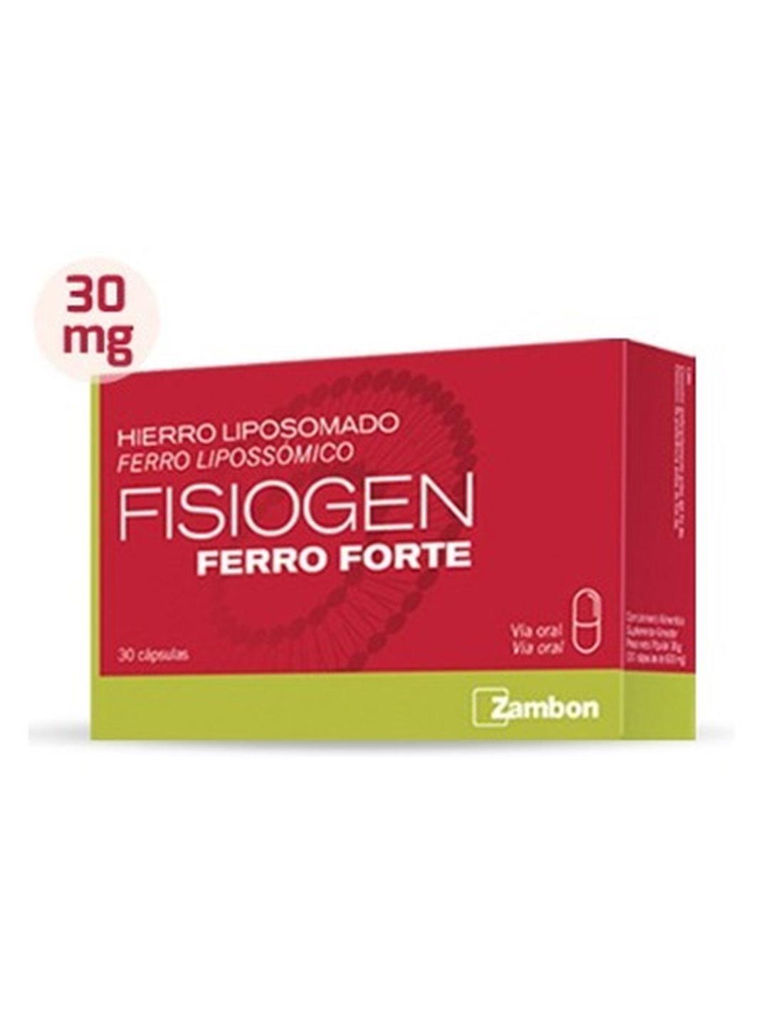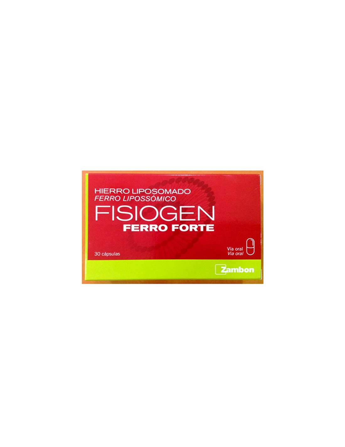 FISIOGENComplemento alimenticio con hierro sucrosomado, útil para cubrir la carencia alimentaria de hierro o en el caso de aumento de las necesidades de este nutriente.\ \ Fisiogen Ferro Forte es un suplemento diseñado específicamente para ayudar a satisfacer las necesidades del cuerpo en situaciones de carencia de hierro. Fisiogen forte es un suplemento oral liposomado está formulado con Hierro Sucrosomado, que consiste en hierro pirofosfato, almidón de arroz pregelatinizado, ésteres de sacarosa de ácido grasos, lecitina de girasol sobre soporte de jarabe de glucosa, fosfato tricálcico y proteína de la leche. Al enmascarar el hierro dentro de un liposoma, Fisiogen Ferro Forte facilita su absorción y biodisponibilidad, lo que favorece la adherencia y permite una mejor asimilación del hierro. Además, Fisiogen contiene ácido L-ascórbico (vitamina C)