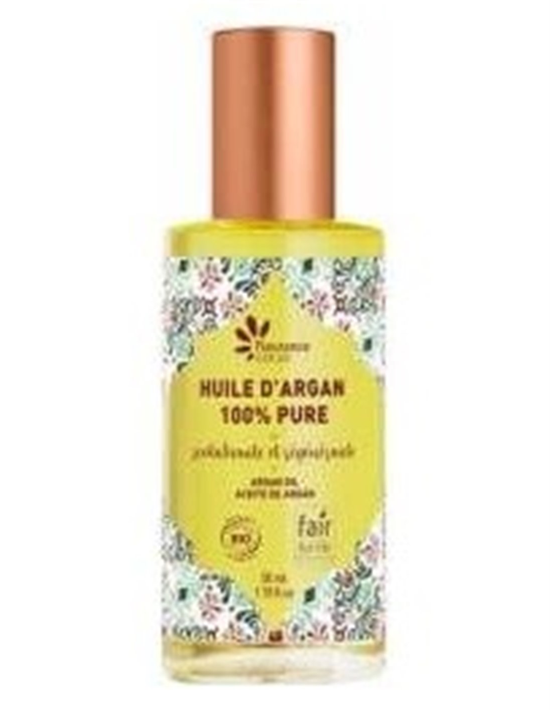 Huile D'Argan Bio 100% Pure o aceite de argán 100& puro es extraído en frío, sin refinar y sin perfumar, lo que contribuye a la conservación de sus propiedades basadas en ácidos grasos esenciales como el omega 3 y vitamina E. Ayuda a regenerar y nutrir la piel, devolviéndole también su brillo. Es multifuncional, por ejemplo puede ser utilizado en el pelo y en las uñas también.