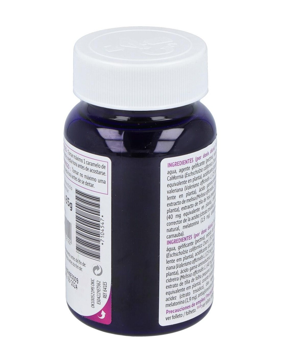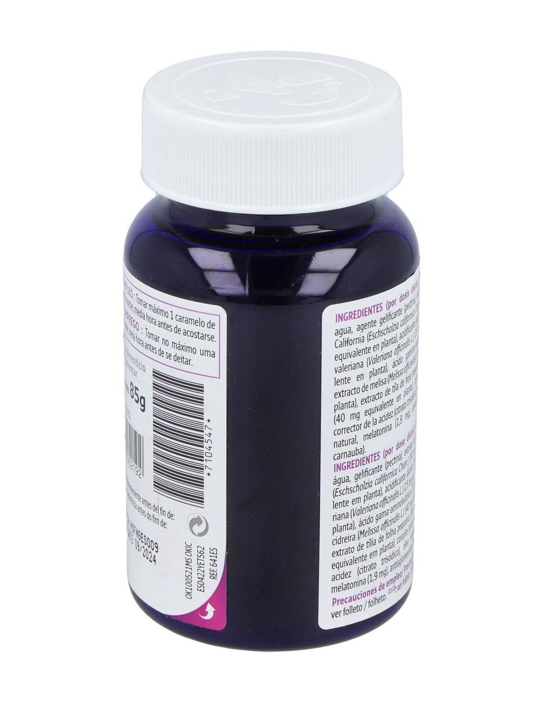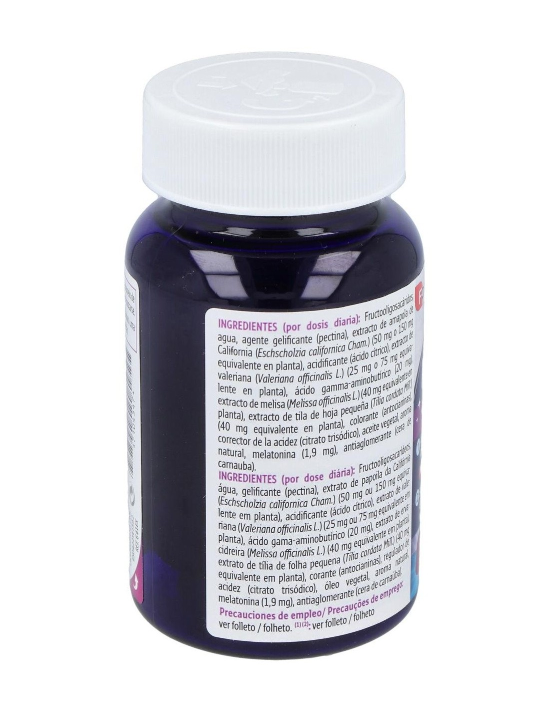 Gominolas con sabor a mora a base de melatonina, que contribuye a recudir el tiempo necesario para conciliar el sueño, y plantas que ayudan a lograr un sueño de calidad.