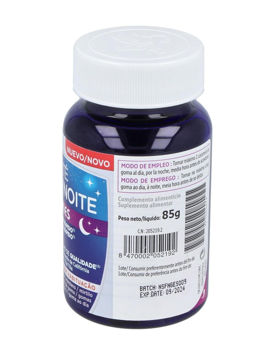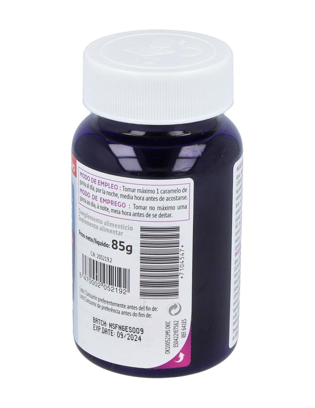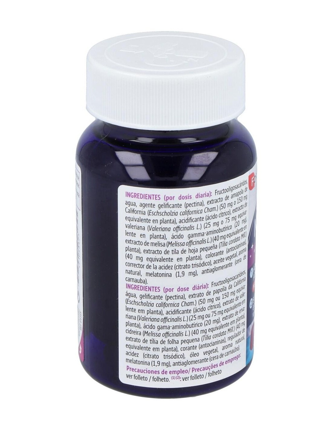 Gominolas con sabor a mora a base de melatonina, que contribuye a recudir el tiempo necesario para conciliar el sueño, y plantas que ayudan a lograr un sueño de calidad.
