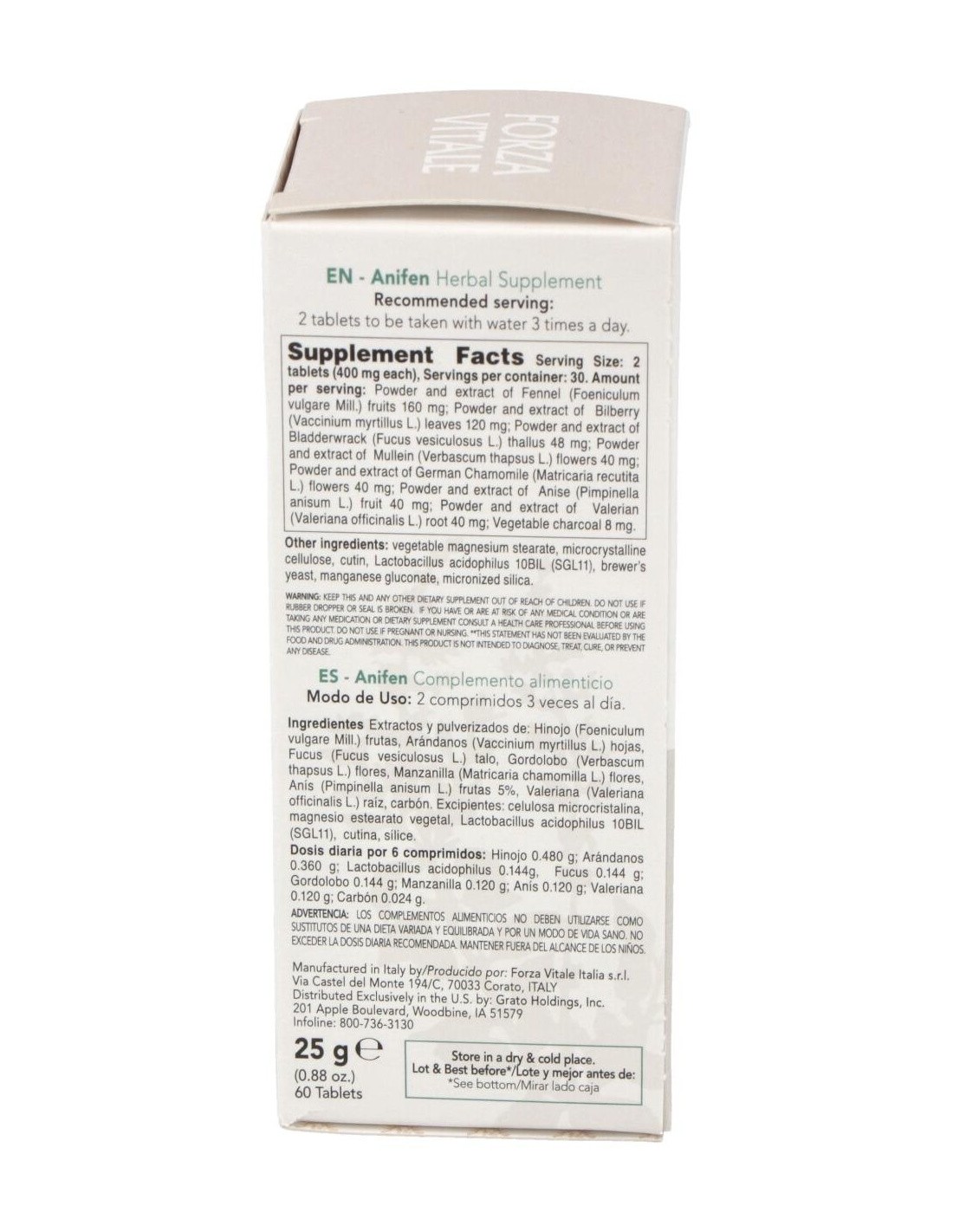 Anifen (Anice Composto) Gases 25Gr.Comprimidos de Forza Vitale