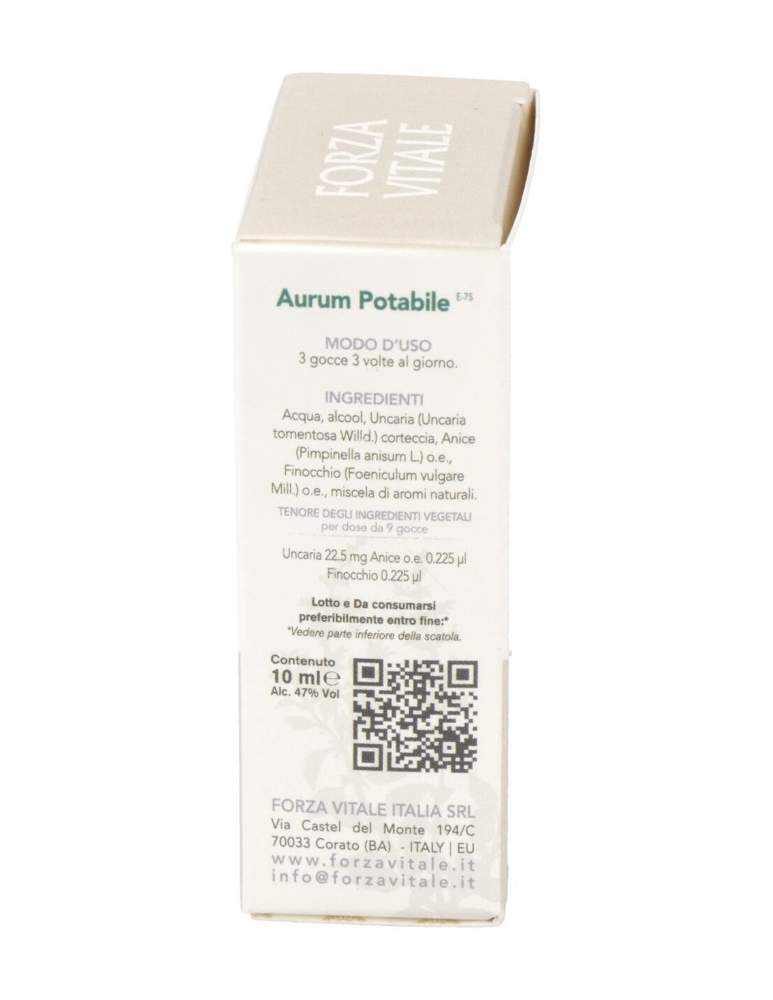 AURUM POTABLE (oro) metal espagirico 10ml. de FORZA VITALE