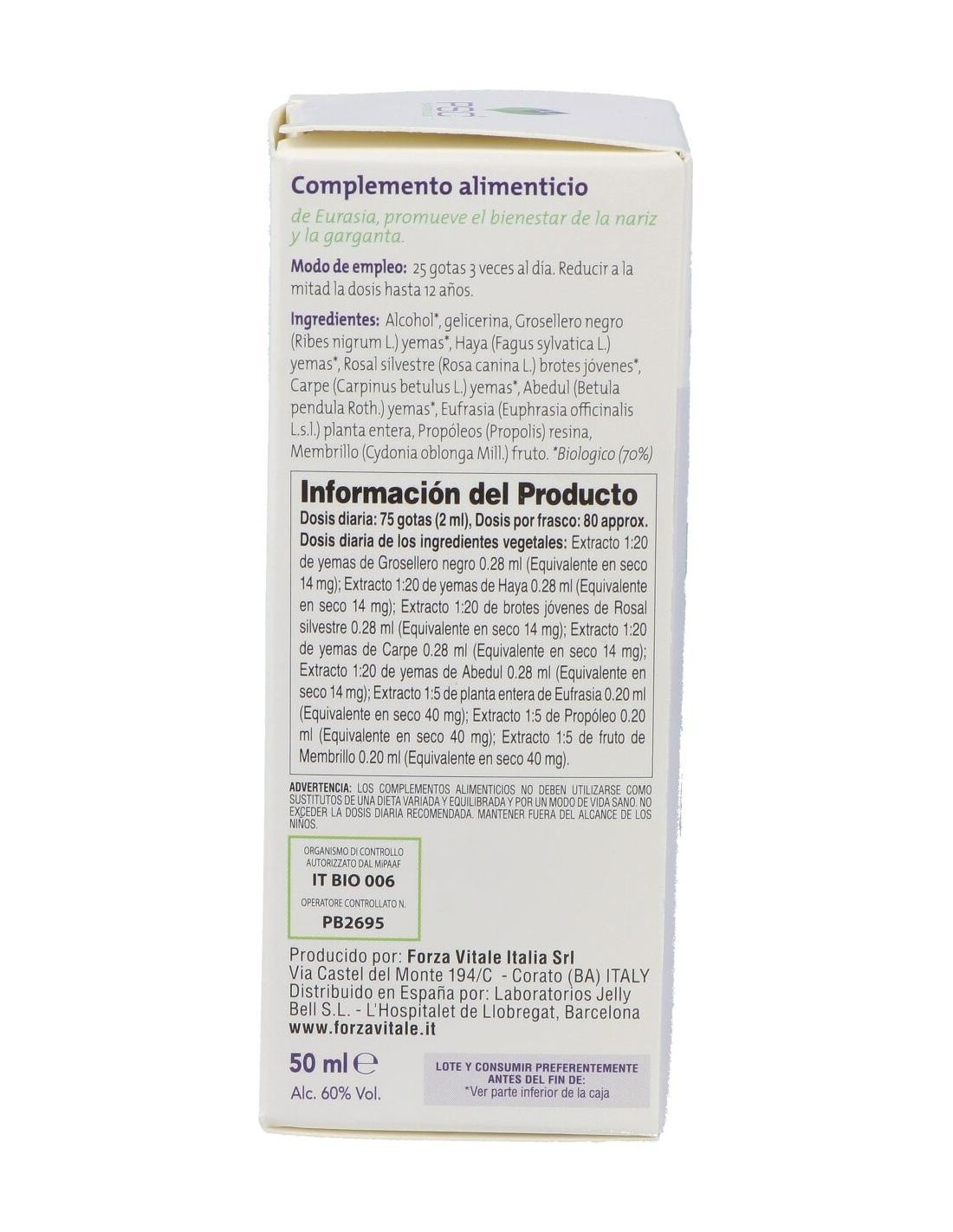 Grosellero negro 0.105 ml: Haya 0.105 ml: Rosal silvestre 0.105 ml: Carpino 0.105 ml: Abedul 0.105 ml: Eufrasia 0.075: Membrillo 0.075 ml: Propóleo 0.075 ml.