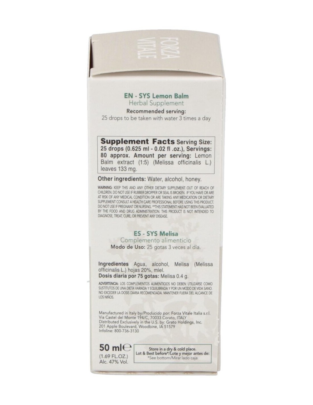 Agua, Alcohol, Melisa (Melisa officinalis) hojas 20%, miel.