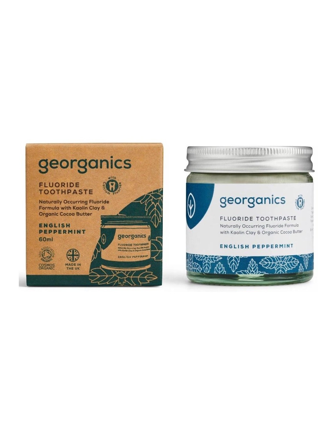 GEORGANICSEsta pasta de dientes natural no espumosa contiene fluoruro de calcio natural (1350 ppm) que ayuda a remineralizar el esmalte y previene la caries dental. Saborizada con aceite de menta orgánico por su aroma refrescante y propiedades antibacterianas, esta pasta dental con fluoruro es una alternativa a las pastas dentales convencionales, ya que elimina las manchas superficiales de forma natural, sin productos químicos agresivos, abrasivos o nocivos para los dientes y las encías. COSMOS Orgánico, Cruelty-free y Vegano.