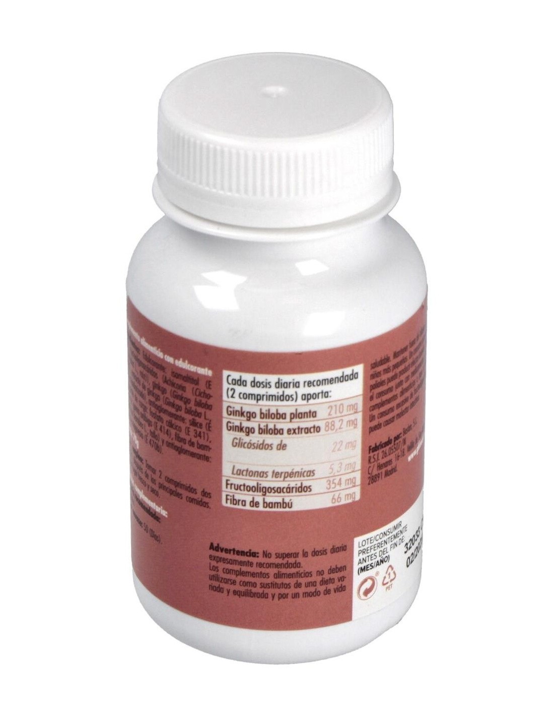 Ginkgo biloba extracto estandarizado 44.1 mg (24% flavonoides), Ginkgo biloba planta 105 mg (0.2% flavonoides). Excipientes.