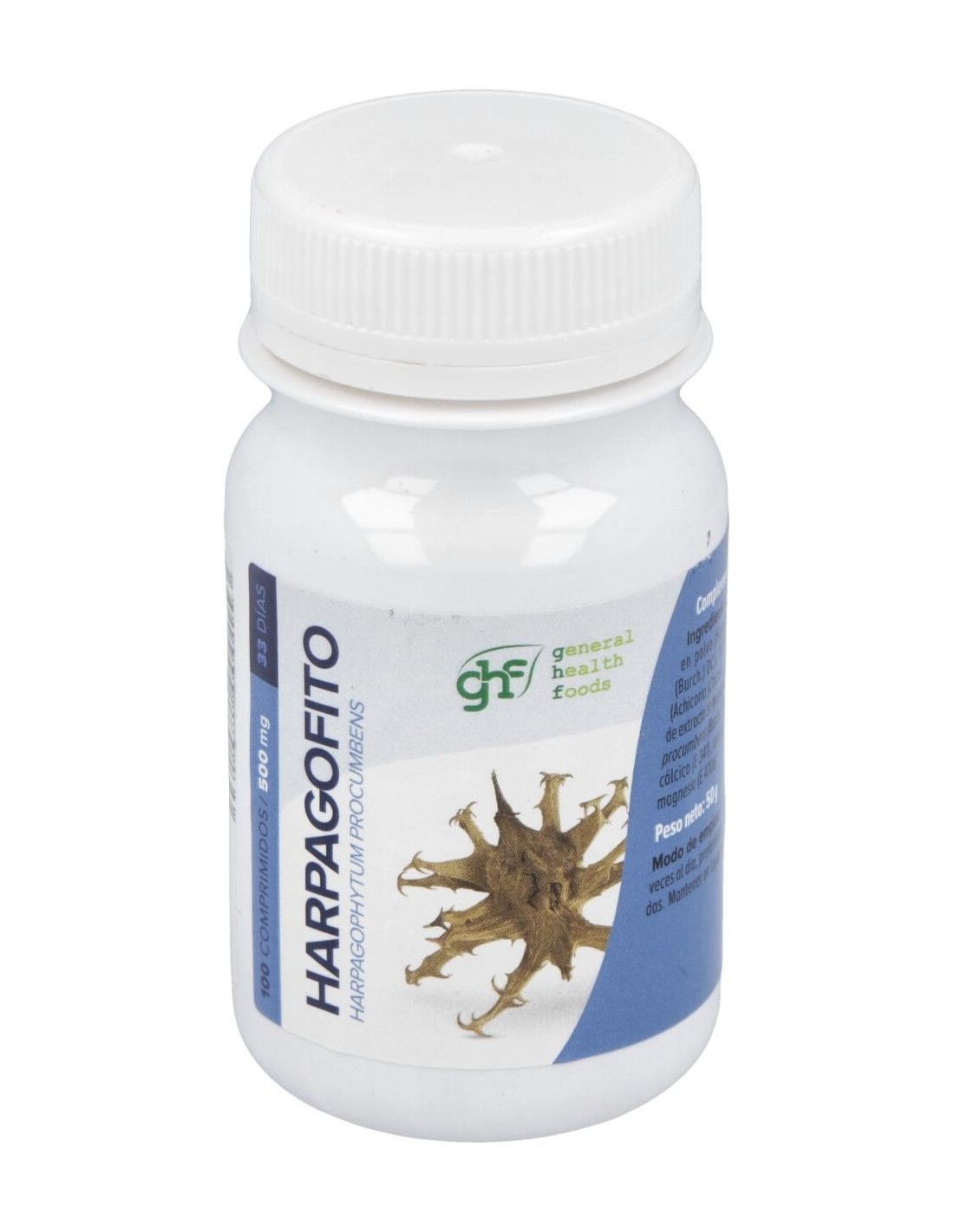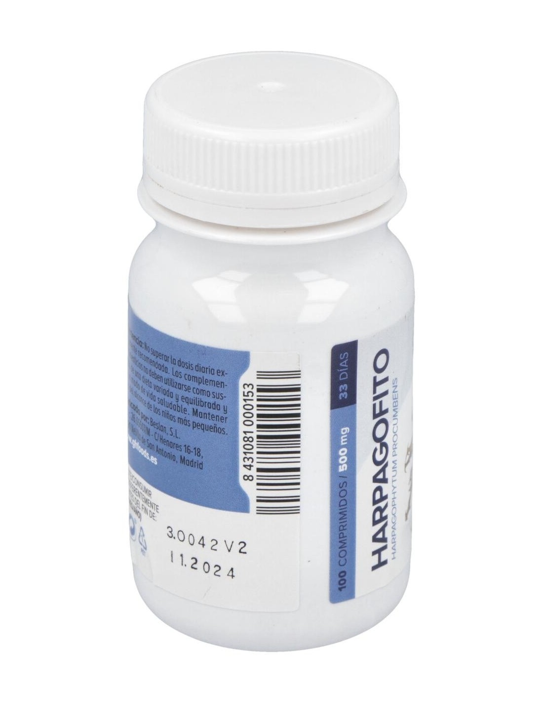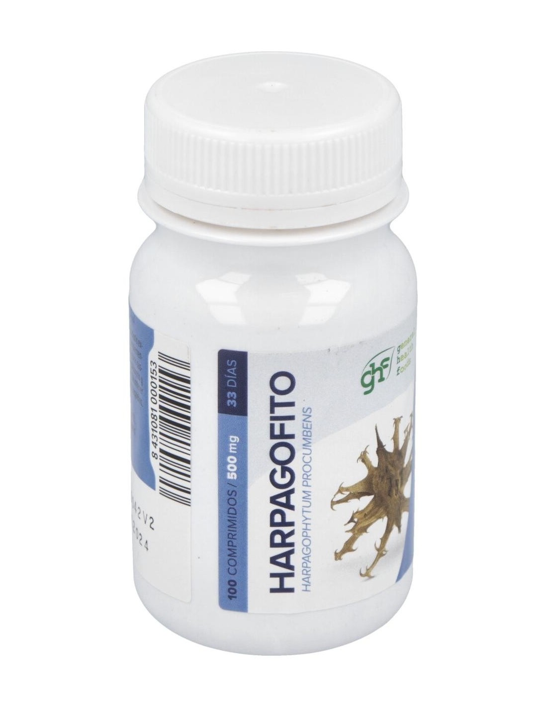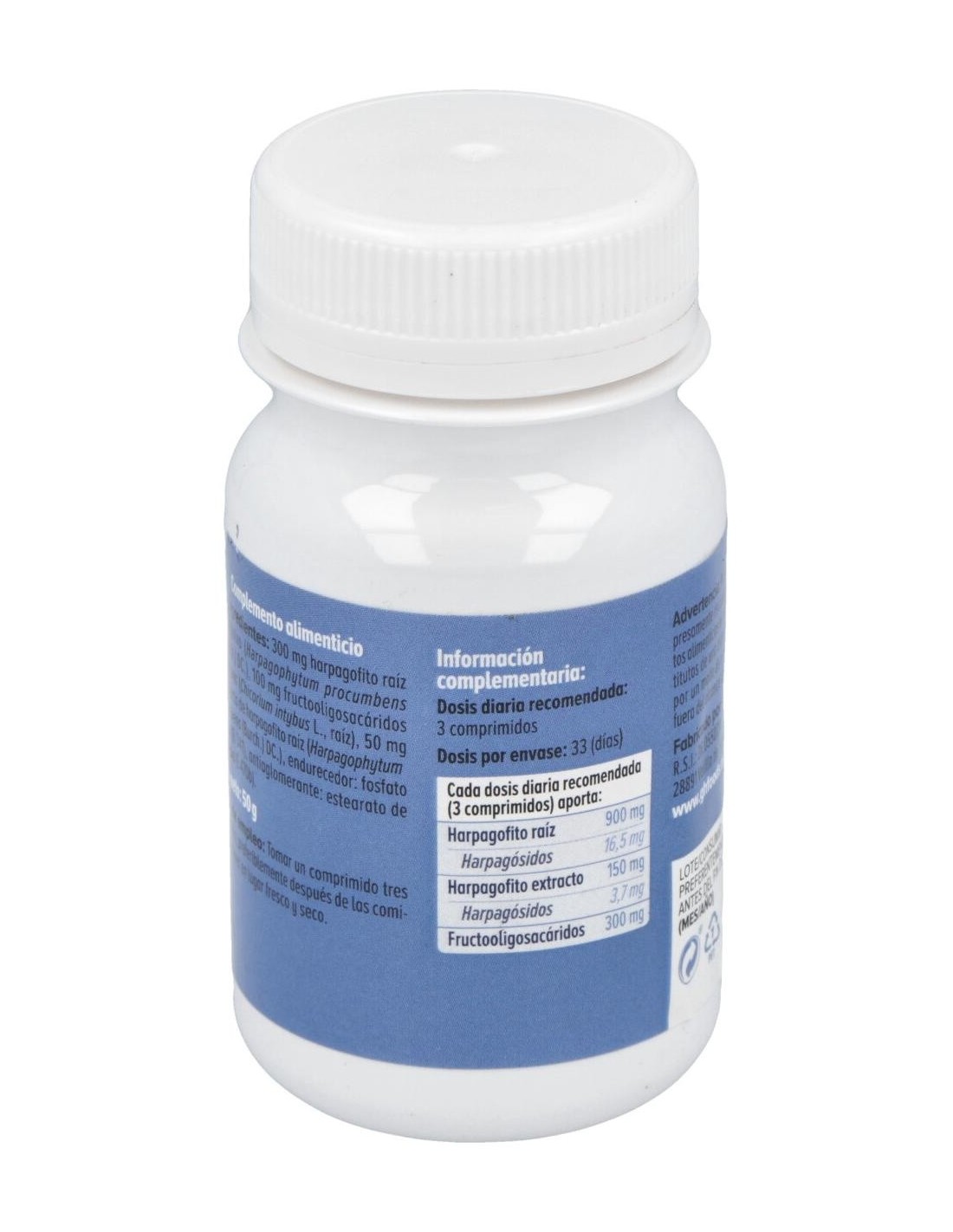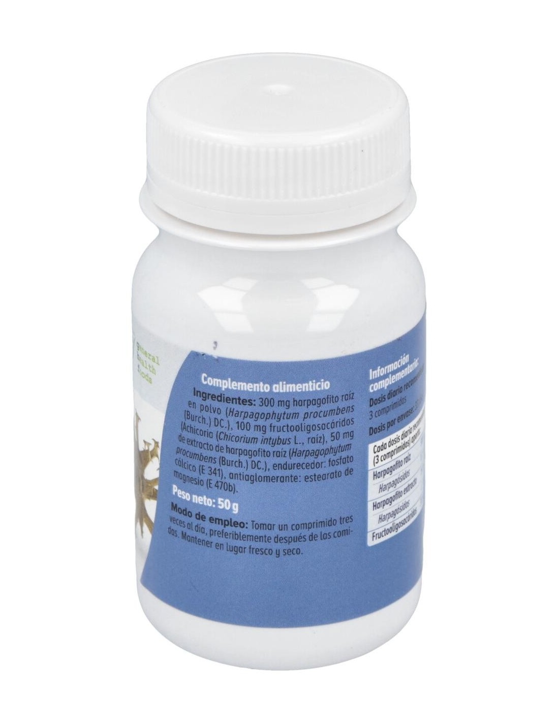 Harpagofito raíz en polvo (Harpagophytum procumbens L.), extracto de harpagofito raíz (Harpagophytum procumbens L.), fructooligosacáridos (Achicoria (Chicorium intybus L., raíz)), agente de carga: fosfato cálcico (E 341) y antiaglomerante: estearato de magnesio (E 470b).