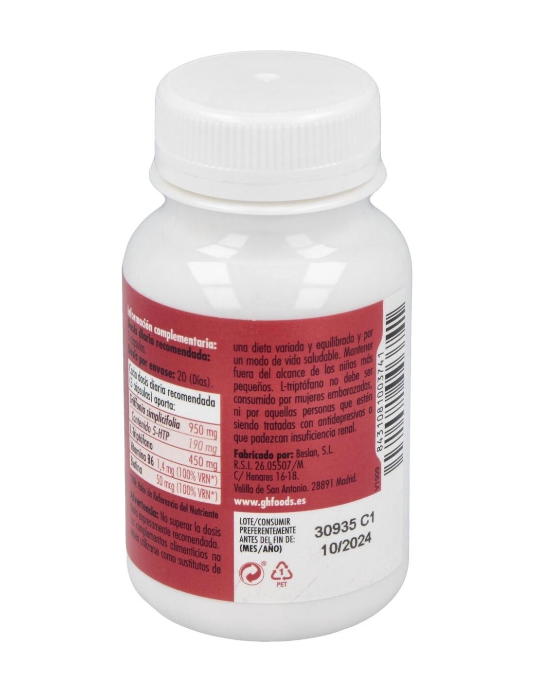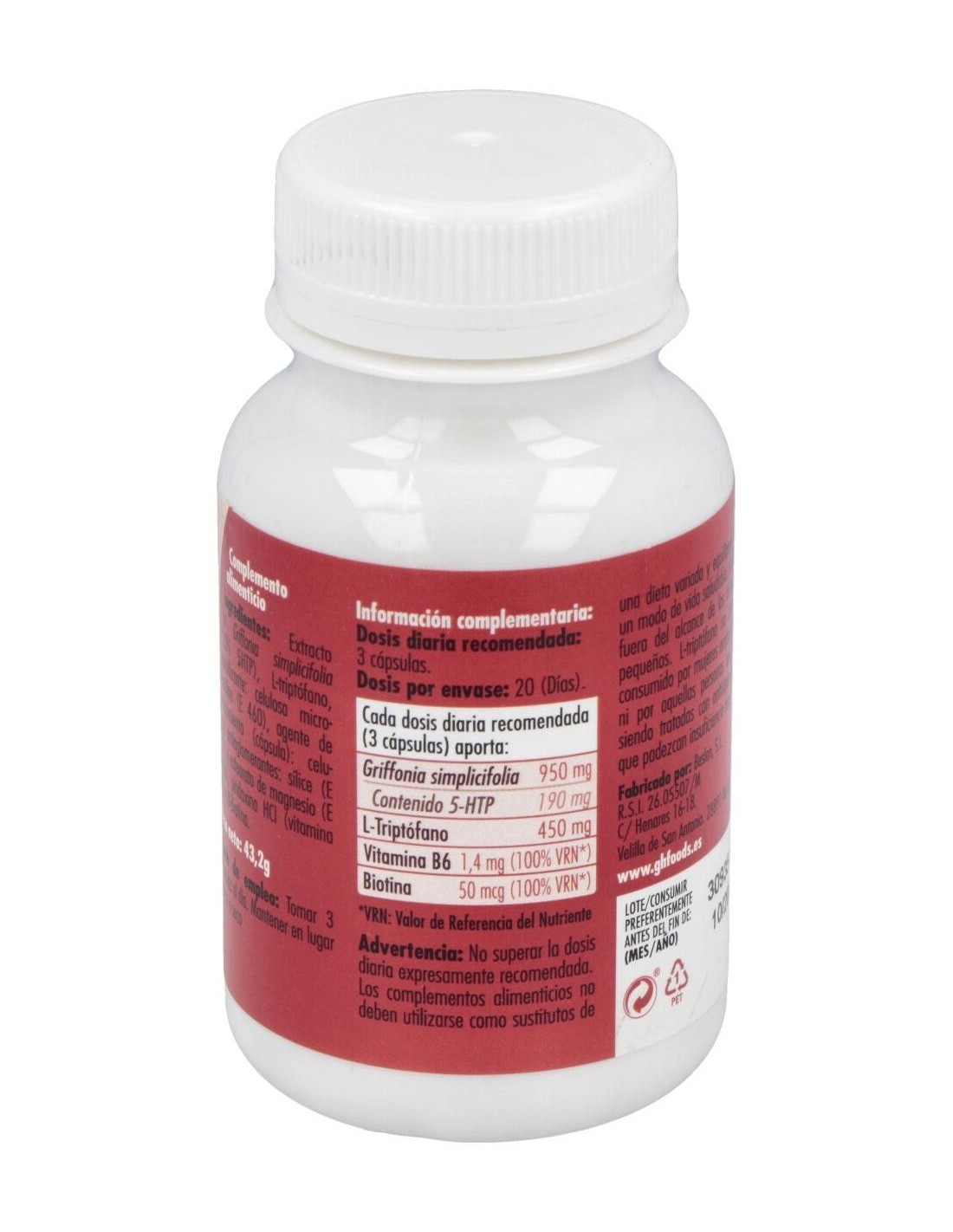 Triptofano 5Htp+B6 60Cap. de Ghf