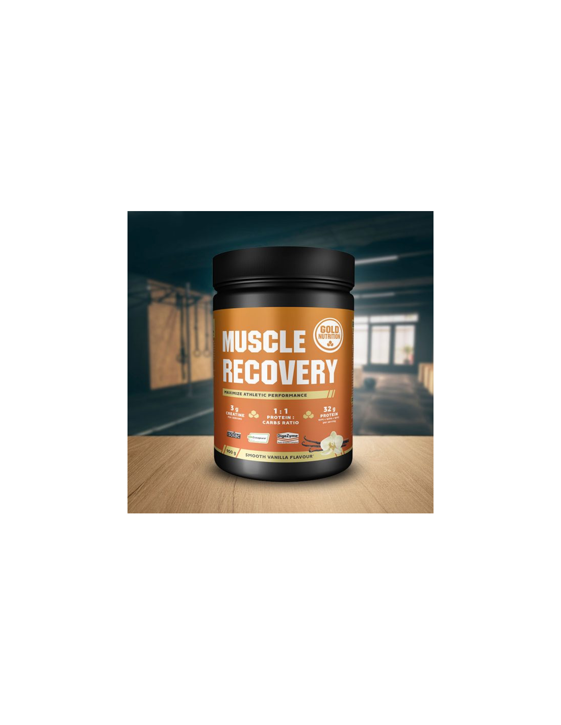 Muscle Recovery GoldNutrition® es una potente fórmula anabólica que contiene: proteínas de alto valor biológico (hidrolizados, aislados y concentrados de suero de leche) esenciales para la síntesis de proteínas y el crecimiento muscular Carbohidratos de rápida absorción, Monohidrato de Creatina, Vitaminas y Minerales. Esta combinación única de ingredientes, ampliamente estudiada por la nutrición deportiva científica, ayuda a mantener la masa muscular y a la reposición de glucógeno. Muscle Recovery GoldNutrition®está destinado a deportistas en modalidades con componente de fuerza/resistencia muscular, con pico de intensidad y fuerza máxima, o entrenamiento de fuerza con objetivo de hipertrofia.