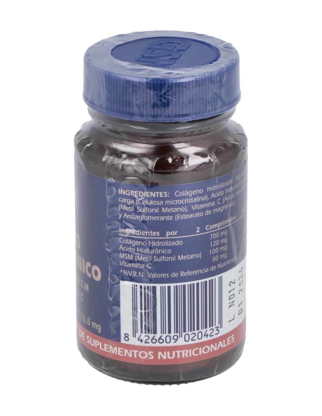 60 mg de ácido hialurónico; 350mg de colágeno hidrolizado tipo II, 50mg de MSM; 30mg de vitamina C.