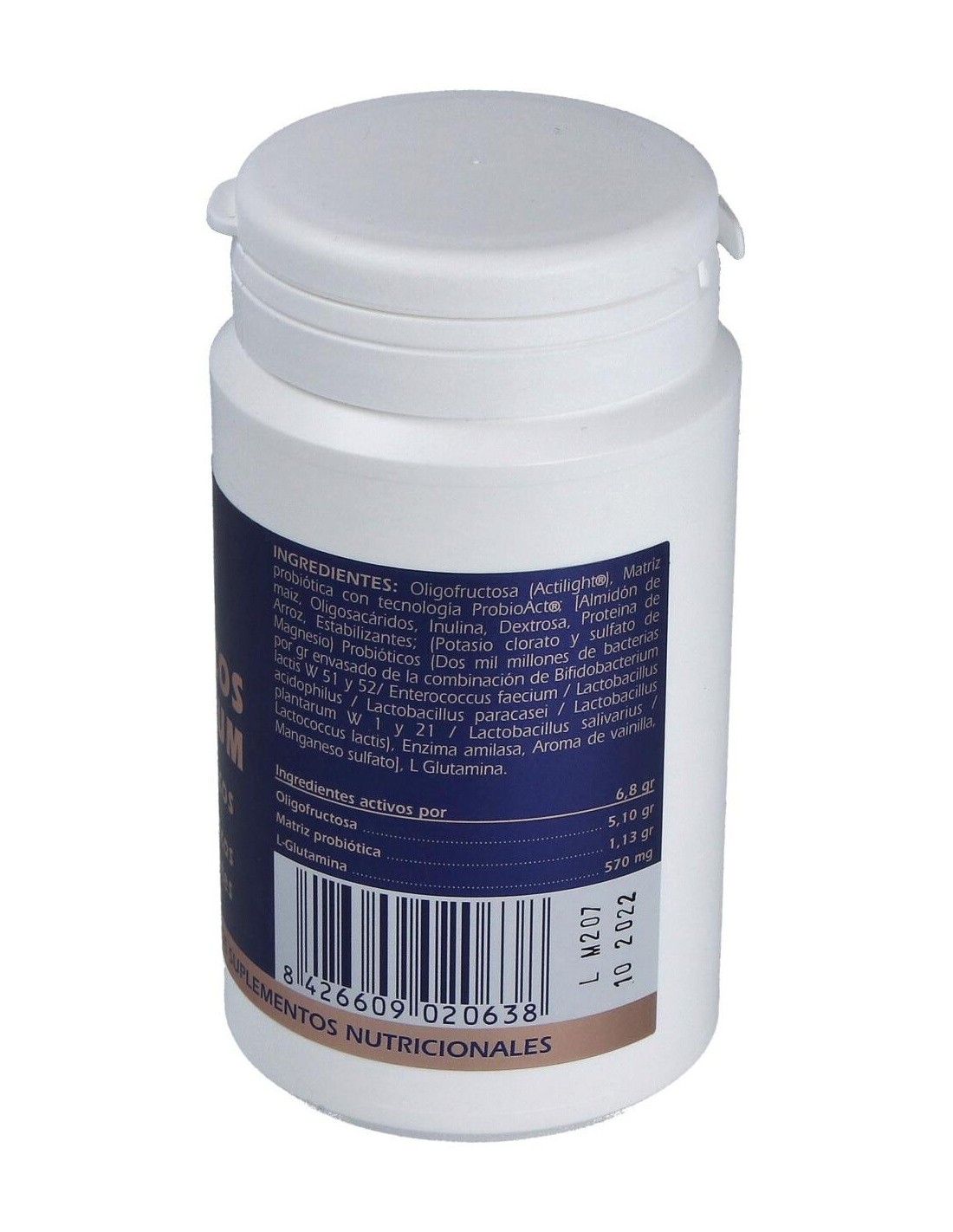 Dos mil millones de bacterias por gr envasado de la combinación de: Bifidobacterium lactis W51 y W52, Enterococcus faecium W54, Lactobacillus acidophilus W22, Lactobacillus paracasei W20, Lactobacillus plantarum W1 y W21, Lactobacillus salivarius W24, y Lactococcus lactis W19