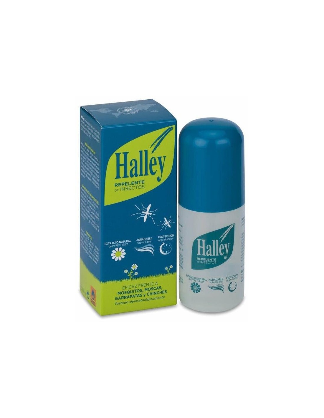 HALLEYSpray que aprovecha las propiedades del extracto natural de pirethrum (obtenido de una flor del tipo crisantemo llamado piretro) para mantener alejados a los insectos y evitar molestias y picaduras. Esta fórmula, de origen natural, es muy efectiva como repelente frente a todo tipo de insectos: mosquitos tropicales (incluido el mosquito tigre), avispas, abejas, tábanos, moscas, etc. Una vez aplicado resulta agradable y fresco debido a su aroma y a que no engrasa la piel. Tamaño para llevar en el equipaje de mano.