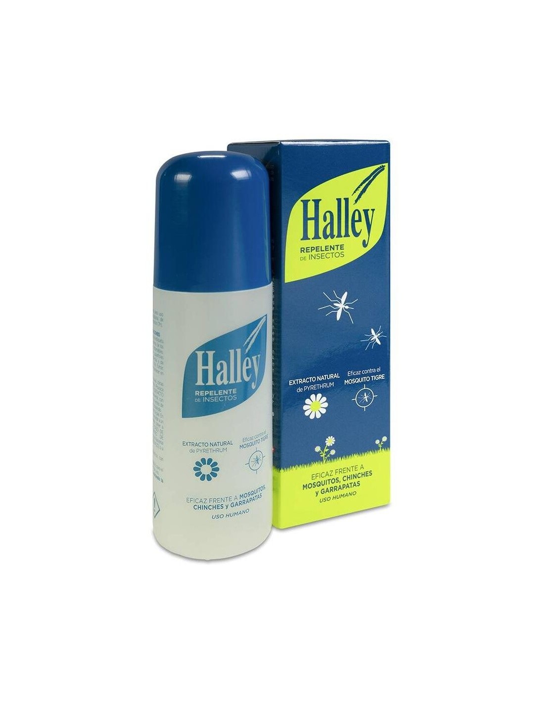 HALLEYSpray que aprovecha las propiedades del extracto natural de pirethrum (obtenido de una flor del tipo crisantemo llamado piretro) para mantener alejados a los insectos y evitar molestias y picaduras. Esta fórmula, de origen natural, es muy efectiva como repelente frente a todo tipo de insectos: mosquitos tropicales (incluido el mosquito tigre), avispas, abejas, tábanos, moscas, etc. Una vez aplicado resulta agradable y fresco debido a su aroma y a que no engrasa la piel. Ideal para viajes de 15 a 20 días.