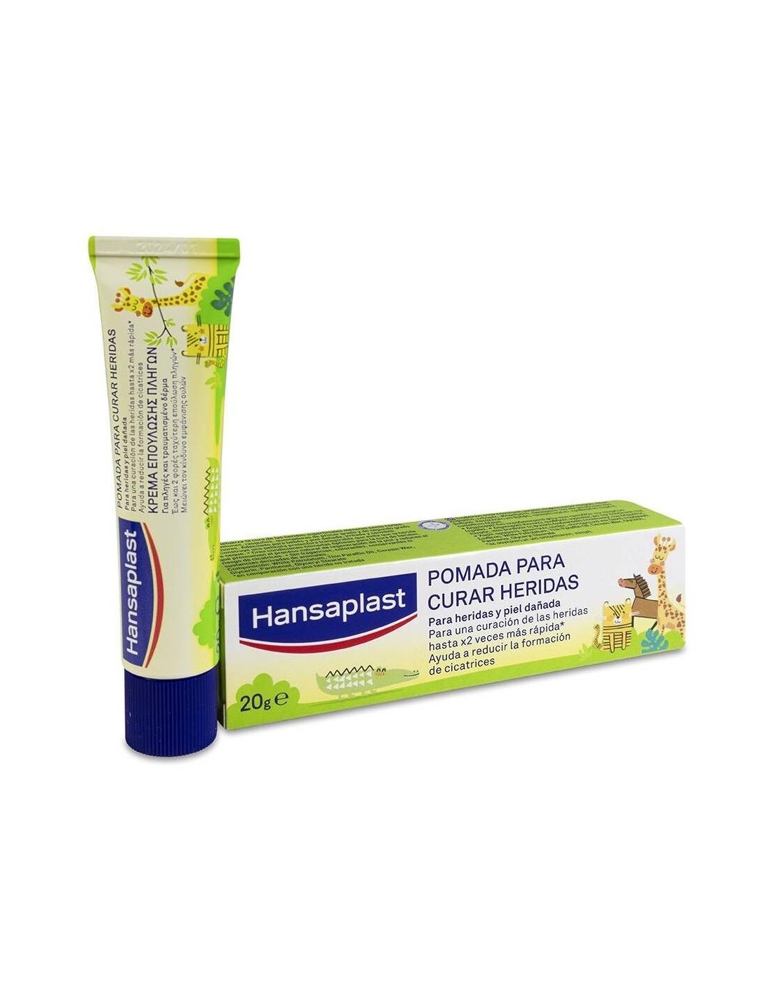 HANSAPLASTUna pomada para ayudar y acelerar la curación natural de heridas superficiales menores como cortes, abrasiones y arañazos, y quemaduras de primer grado,y de segundo grado menores. Hansaplast Pomada para Curar Heridas puede utilizarse en cualquier etapa del proceso curativo de heridas superficiales, incluso abiertas, y en pieles dañadas. Crea una película transpirable que protege la herida de las influencias externas y evita que la herida se seque. Está clínicamente probado que promueve una curación más rápida y reduce el riesgo de cicatrices. No contiene colorantes, fragancias ni sustancias de origen animal. Hansaplast Pomada para Curar Heridas se puede combinar con apósitos estándar de Hansaplast, como los de las gamas Universal , Elastic, Sensitive, así como los apósitos infantiles.