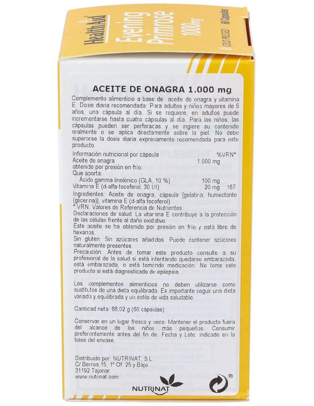 Aceite de Onagra obtenido por presión en frío........... 1000 mg