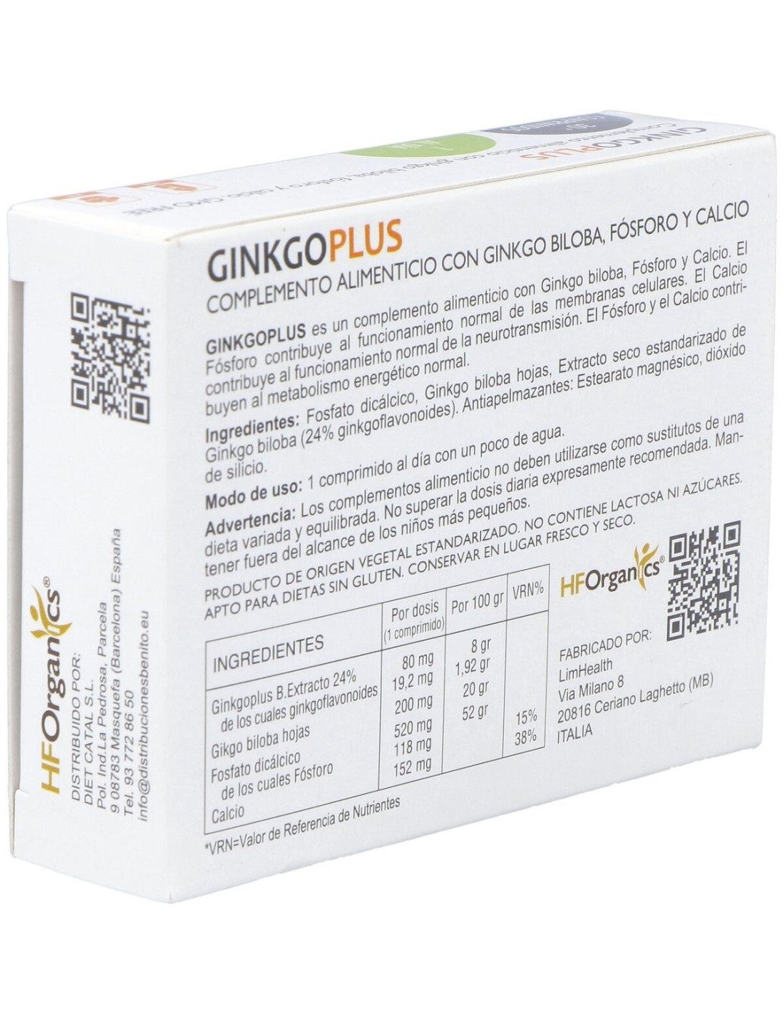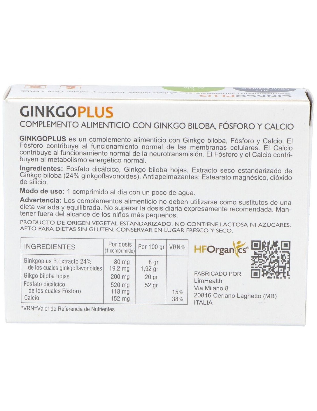 Suplemento a base de ginkgo enriquecido con fósforo y calcio. El fósforo contribuye al funcionamiento normal de las membranas celulares. El calcio ayuda al funcionamiento normal de la neurotransmisión. Ambos contribuyen al metabolismo energético normal.