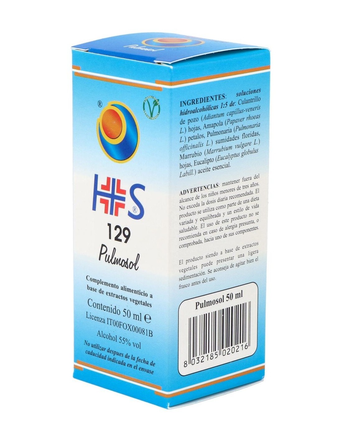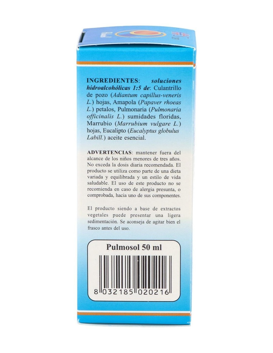 TSA (Tintura Espagírico-Alquímica de Solanimus R.E. 1/5) de: Culantrillo de pozo (Adiantum capillus-Veneris L.) hojas 2,52 g, Amapola (Papaver rhoeas L.) petalos 2,205 g, Pulmonaria (Pulmonaria officinalis L.) sumidades floridas 0,210 g, Marrubio (Marrubium vulgare L.) hojas 0,210 g. QSPC (QuintaEsencia Espagírica de Paracelso Canónica) de Eucalipto (Eucalyptus globulus Labill.) aceite esencial 0,105 g.