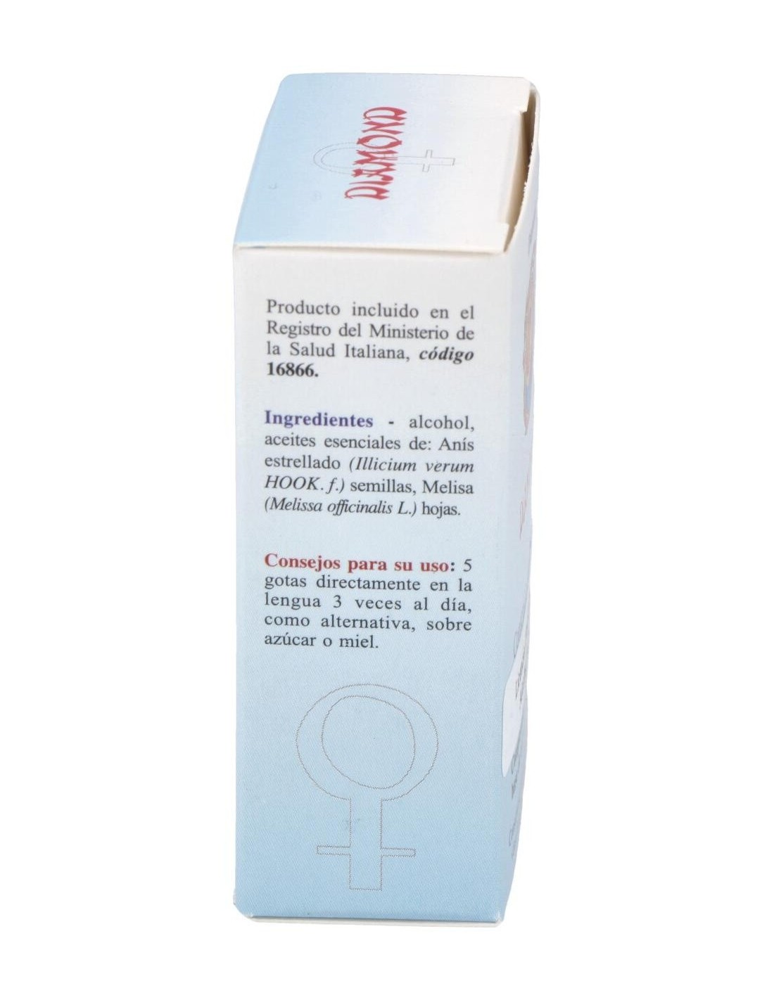 Alcohol, aceites esenciales de: Anís estrellado (Illicium verum HOOK. f.) 41,77 mg, Melisa (Melissa officinalis L.) 38.02 mg.