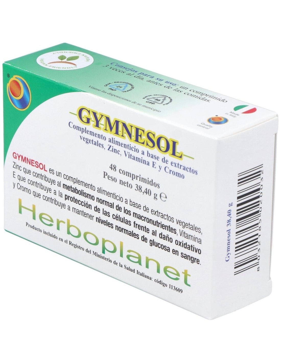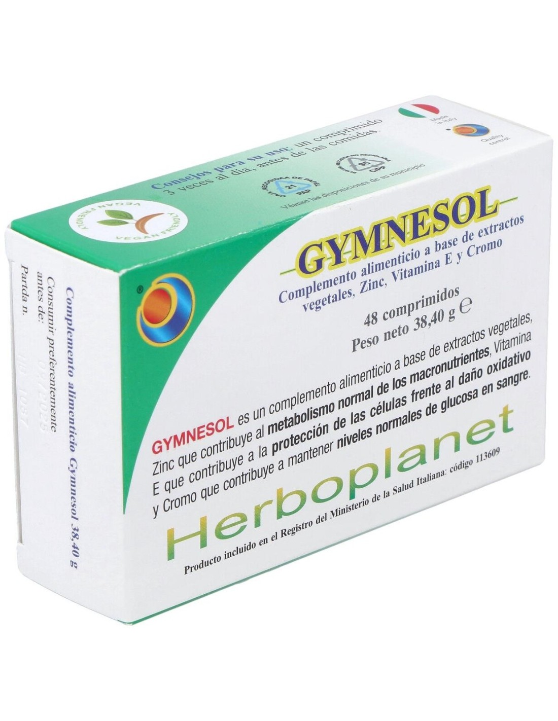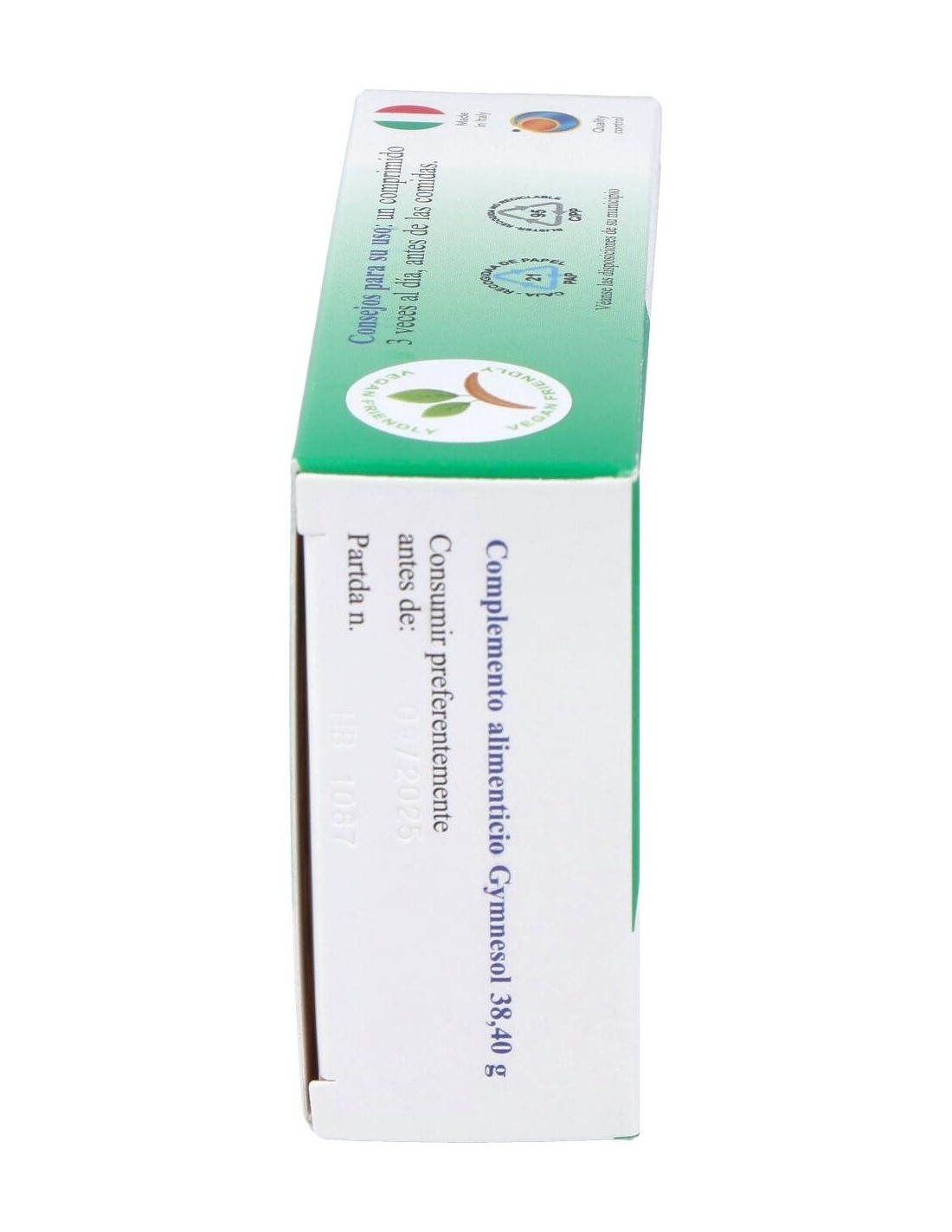 Extracto seco de Gymnema (Gymnema sylvestris) hojas 840 mg (aporte en Ácido gymnémico 210 mg), extracto seco de Arándano (Vaccinium myrtillus) frutos 360 mg (aporte en mirtilina mg): Agentes de carga: celulosa microcristalina, fosfato de calcio. Citrato de Zinc dihidratado 72 mg (aporte en Zinc 21 mg). Antiaglomerantes: estearato de magnesio vegetal, dióxido de silicio. Vitamina E 10 mg, Picolinato de Cromo 1,5 mg (aporte en cromo 180 µg)