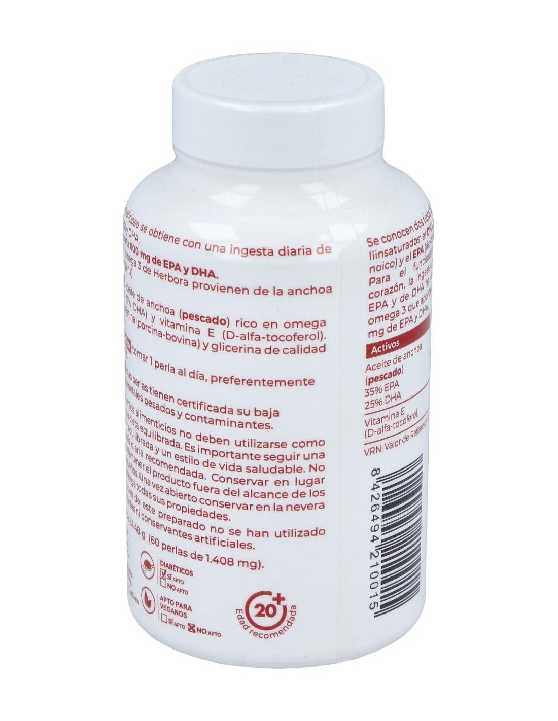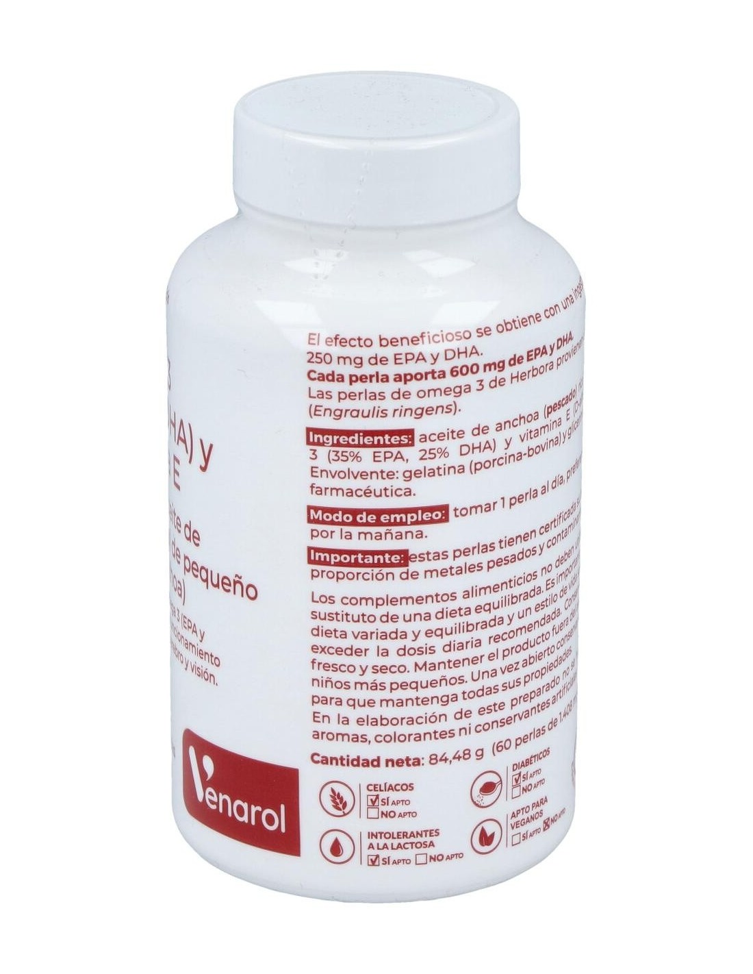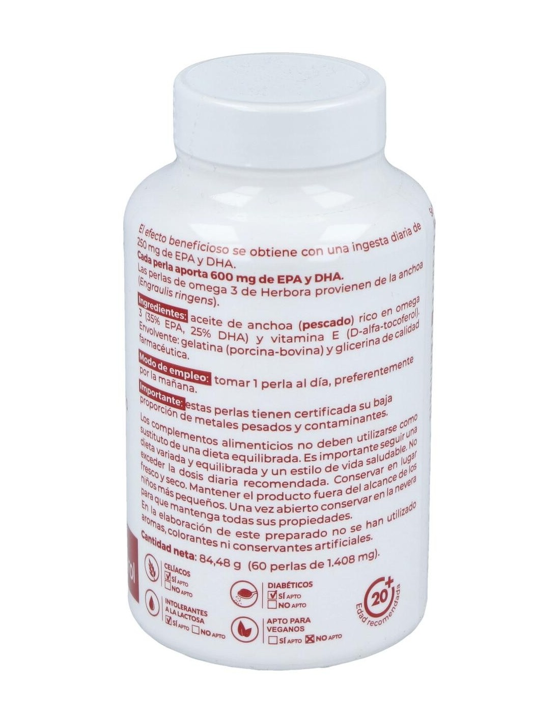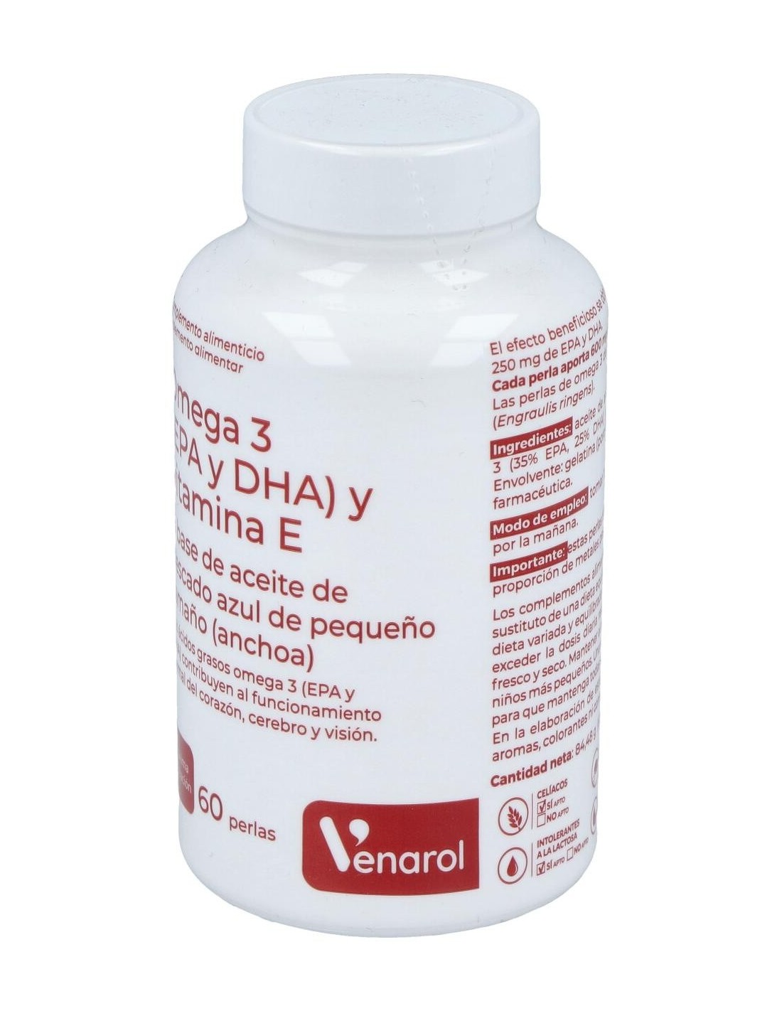 Complemento alimenticio en cápsulas de origen biológico sin gluten, azúcar ni lactosa, que está especialmente ideado para ayudar al funcionamiento normal del sistema circulatorio, del cerebro y de la visión. Está elaborado a base de Omega 3 (Epa y Dha y de Vitamina E). Contiene aceite de anchoa.
