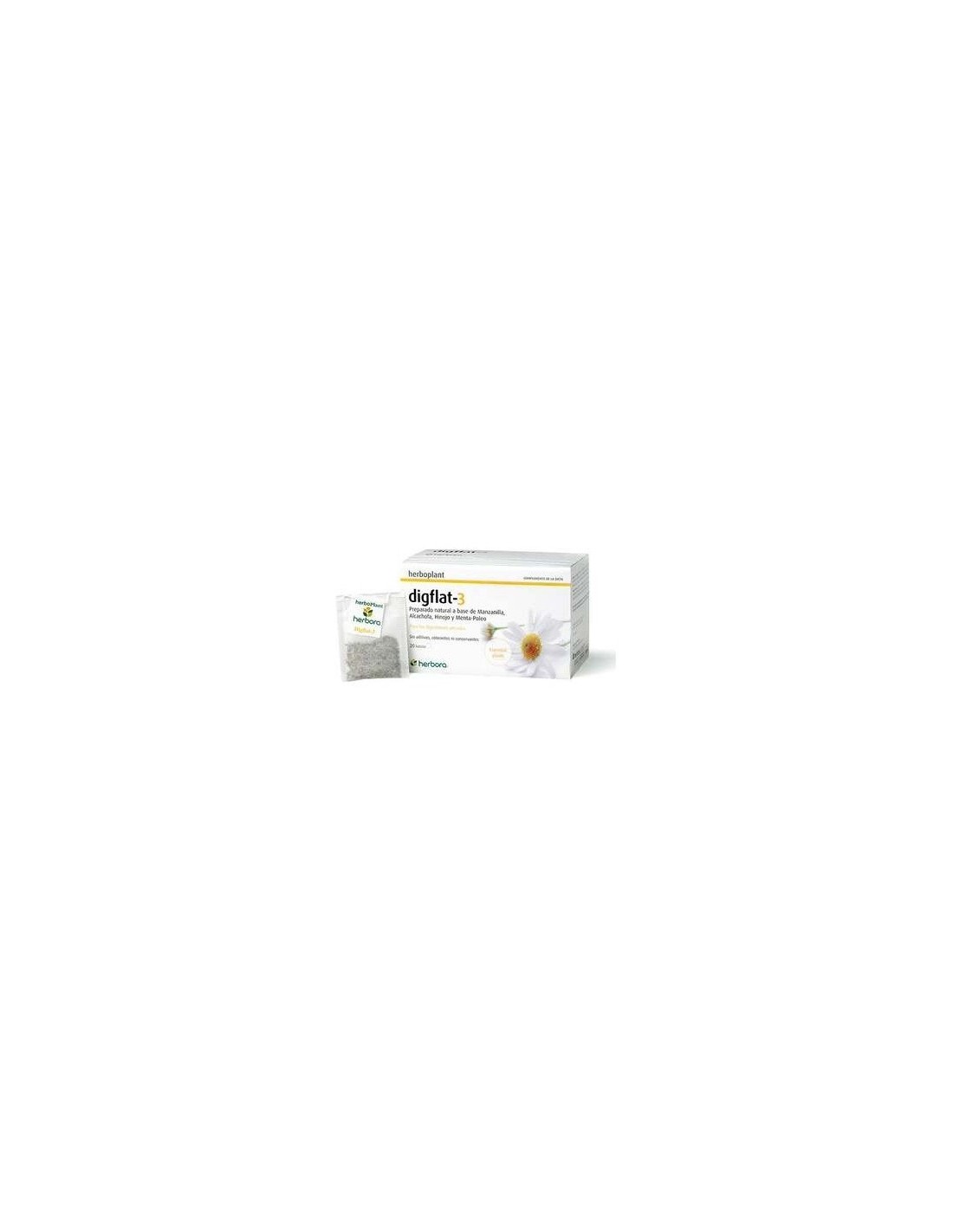 Herbora Digflat 3 20 Filtros es un preparado natural a base de plantas específicamente seleccionadas (manzanilla, menta poleo, hinojo y alcachofa) para obtener una plena garantía de eficacia, indicada para combatir las digestiones pesadas.