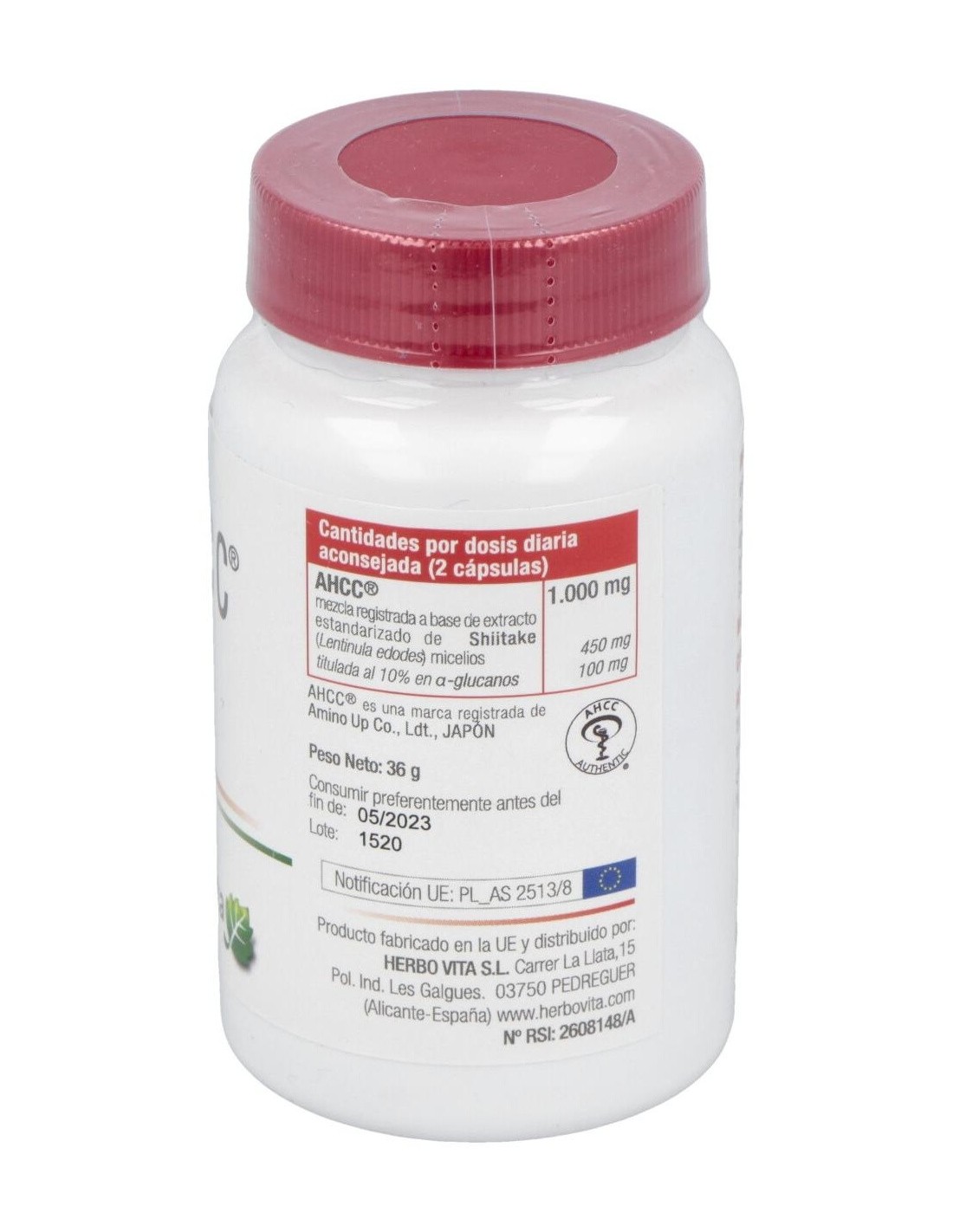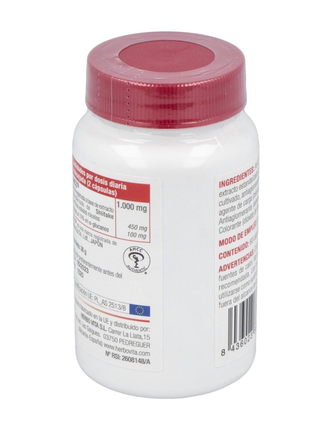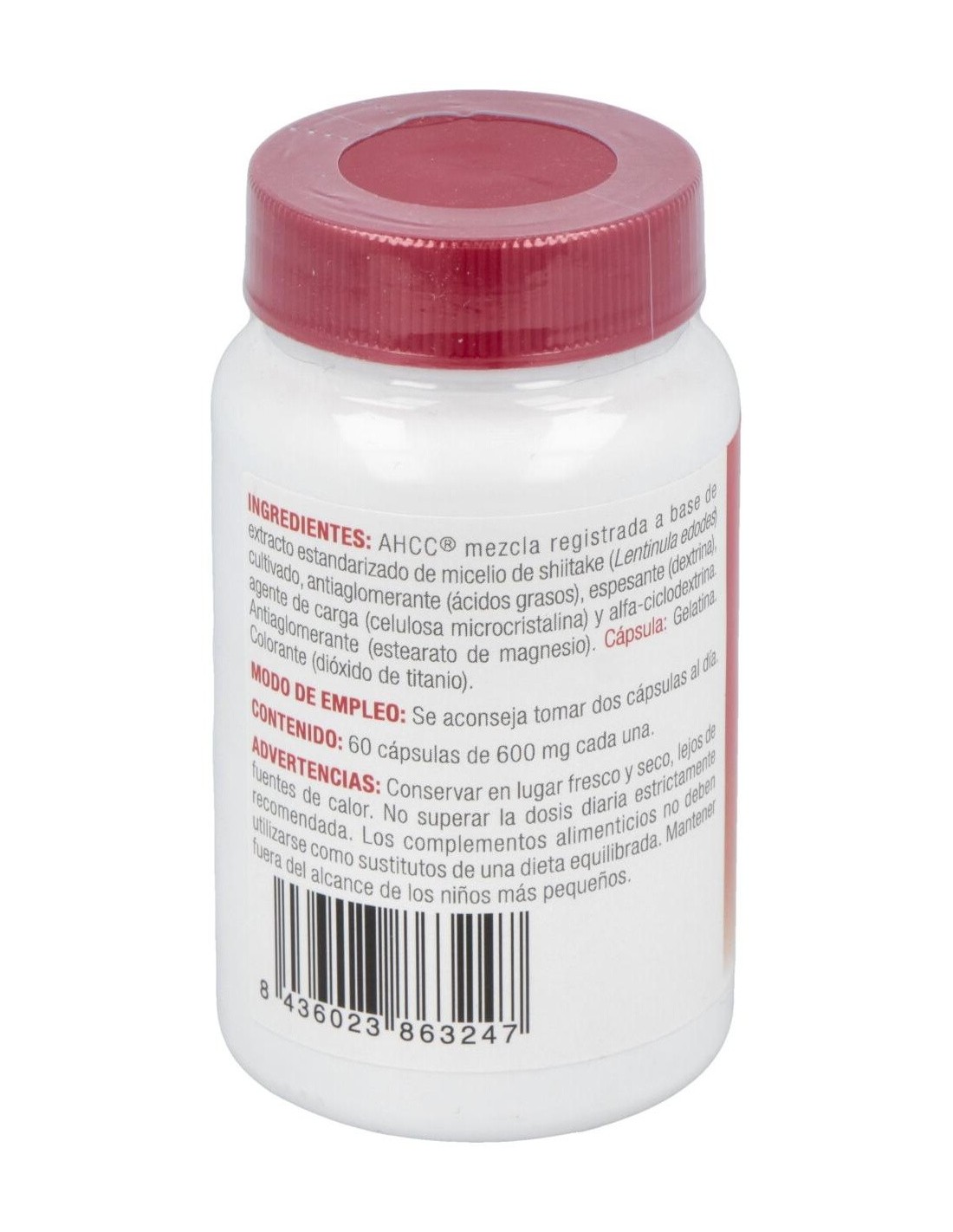 AHCC® (Compuesto correlacionado hexosa activa): mezcla registrada a base de extracto de Shiitake (Lentinula edodes (Berk.) Pegler) micélios, antiaglomerante (ácidos grasos), espesante (dextrina), agente de carga (celulosa microcristalina) y alfa-ciclodextrina. Antiaglomerante (estearato de magnesio). Cápsula: Gelatina. Colorante (dióxido de titanio).