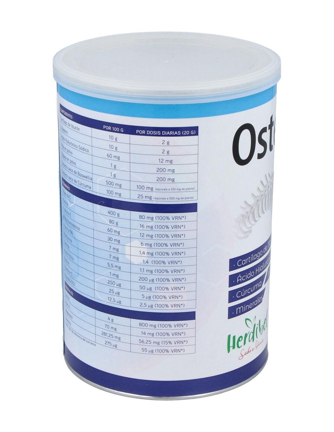 Maltodextrina, Citrato tricálcico, Cartílago de tiburón, Colágeno de pescado hidrolizado, Gluconato de magnesio, Aroma de naranja, Piña en polvo, Papaya en polvo, Extracto seco de boswellia, Dióxido de silicio, Vitamina C, Sulfato ferroso, Extracto seco de cúrcuma, Vitamina E, Vitamina B 3 (Niacina), Edulcorantes: Sucralosa y Glucósidos de esteviol, Vitamina B 5, Vitamina B 6, Vitamina B 12, Vitamina D, Vitamina B 2, Vitamina B 1, Ácido fólico, Selenito sódico, Vitamina H.
