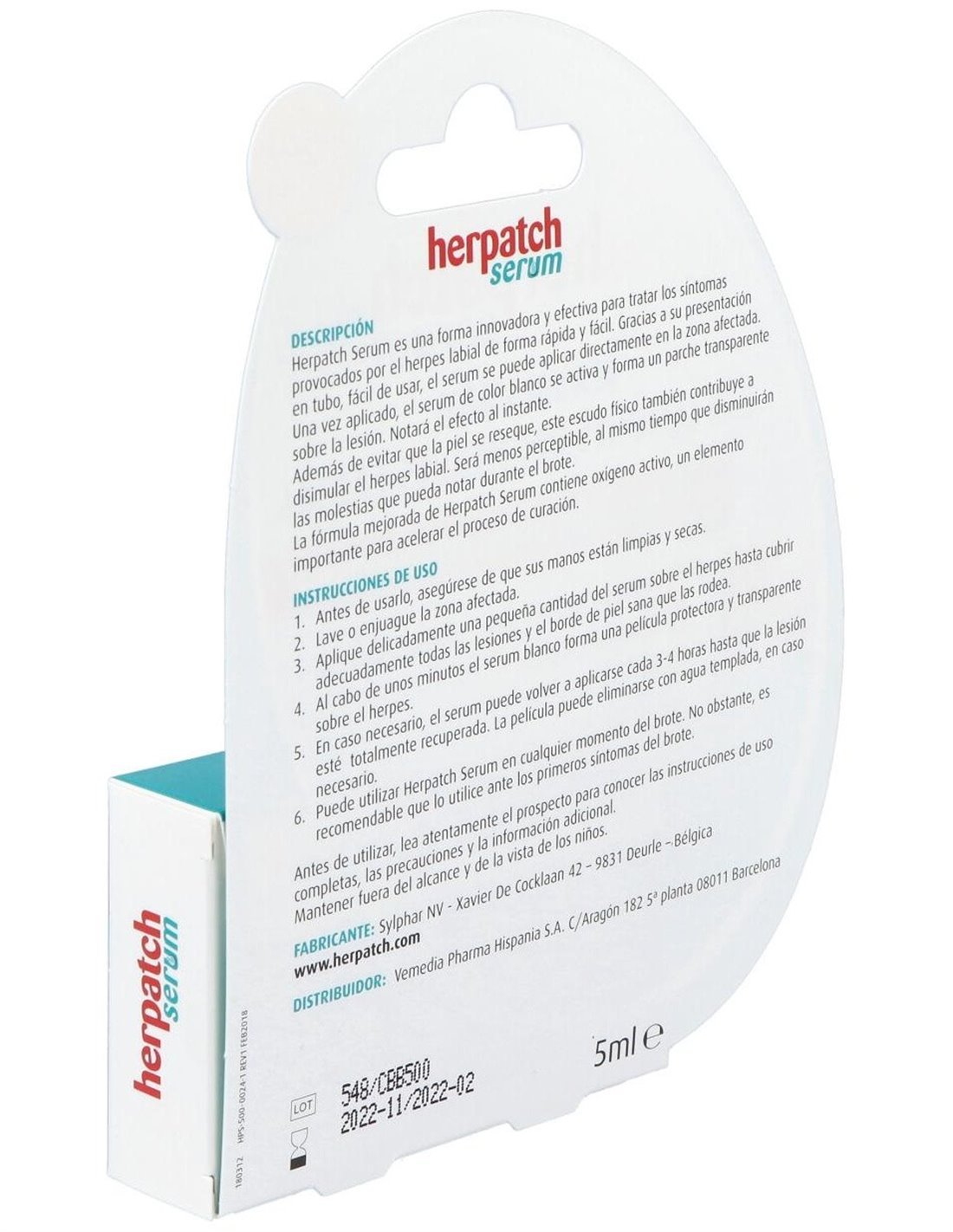 Sérum que forma un parche líquido útil en síntomas del herpes labial. Es un producto sanitario, que forma una película que actúa de barrera mecánica para el control del micro ambiente de la piel dañada.