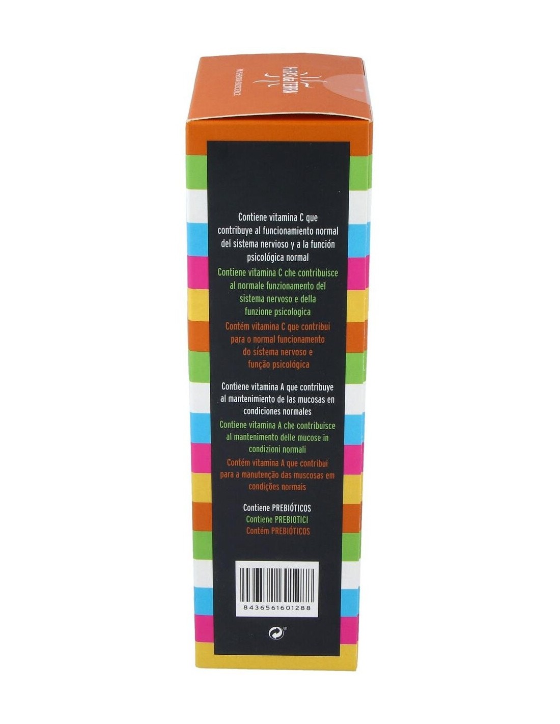 Agua, néctar de ágave eco, ciclodextrina, fructooligosacáridos (90 % inulina), jugo concentrado de acerola eco, 60 mg de extracto eco de ganoderma lucidum (0,4%), 60 mg de extracto eco de agaricus blazei (0,4 %), 60 mg de extracto eco de pleurotus ostreatus (0,4%), 60 mg de extracto eco de inonotus obliquus (0,4%), 60 mg de extracto eco de lentinula edodes (0,4%), 59 mg de ácido ascórbico (vit C), aroma de fresa, conservadores (sorbato potásico y benzoato de sodio), corrector de acidez (ácido cítrico), 3.7 mcg vitamina D.