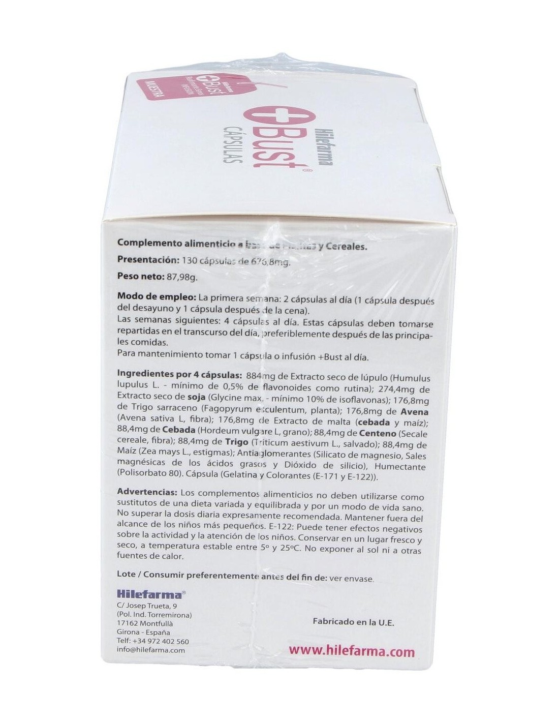 221mg de Extracto seco de lúpulo (Humulus lupulus L. - mínimo de 0,5% de flavonoides como rutina): 68,6mg de Extracto seco de soja (Glycine max, - mínimo 10% de isoflavonas): 44,2mg de Trigo sarraceno (Fagopyrum esculentum, planta): 44,2mg de Avena (Avena sativa L, , fibra): 44,2mg de Extracto de malta (cebada y maíz): 22,1mg de Cebada (Hordeum vulgare L, grano): 22,1mg de Centeno (Secale cereale, fibra): 22,1mg de Trigo (Triticum aestivum L., salvado): 22,1mg de Maíz (Zea mays L., estigmas): Antiaglomerantes (Silicato de magnesio, Sales