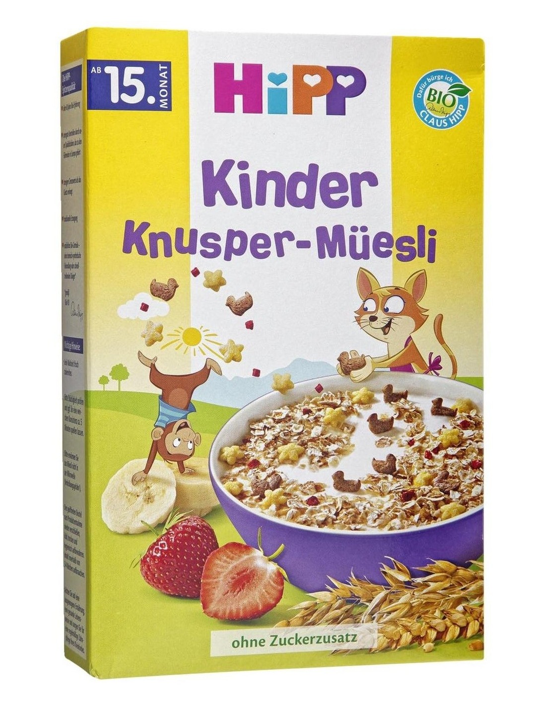 HIPPMuesli para niños a partir de 15 meses. Con divertidas y crujientes flores y estrellas, de textura y sabor adaptado a los bebés más mayores. Sin azúcares ni aromas añadidos.